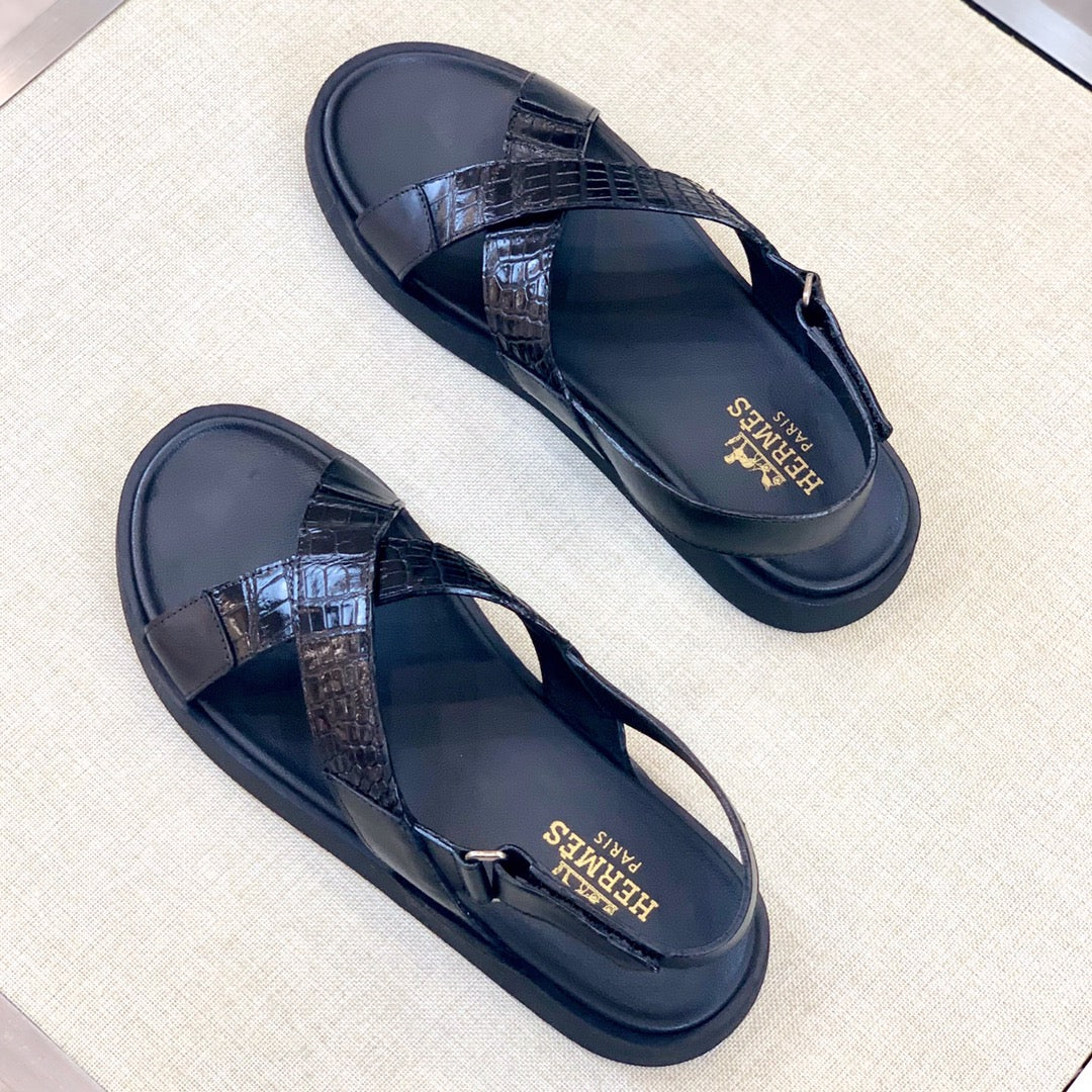 HM Men's Open-toe Sandals Black Rubber Sheepskin 561660