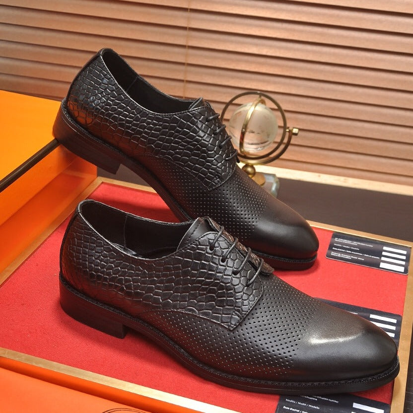 HM OXFORD LACE-UP BLACK WITH PATTERN CALFSKIN