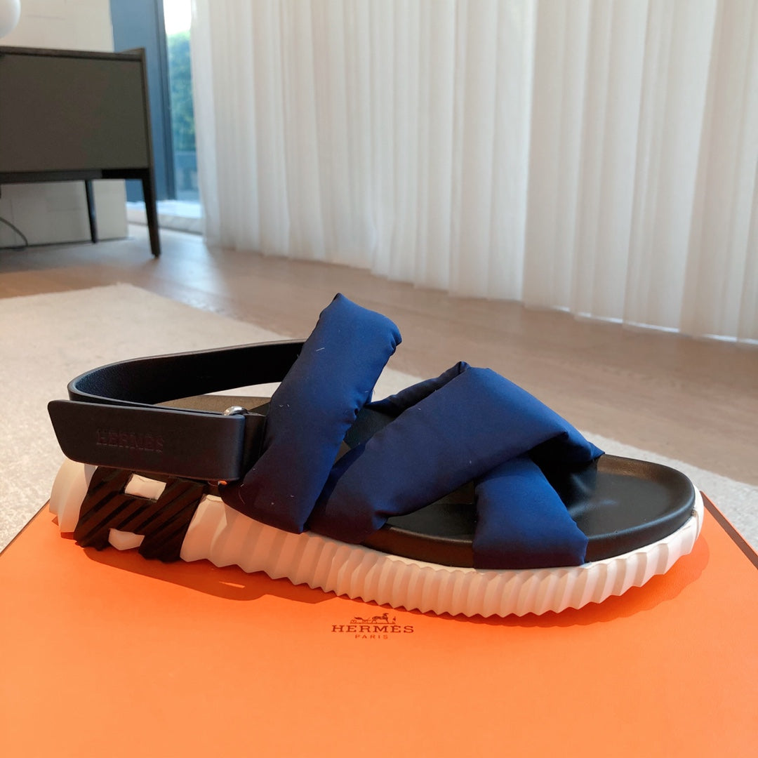 HM ELECTRIC SANDAL COBALT FABRIC AND CALFSKIN