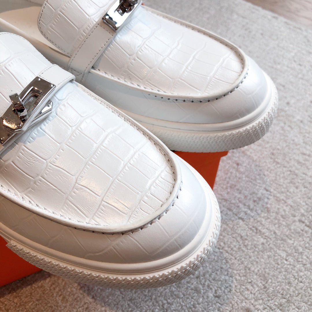 HM GAME SLIP-ON CROCODILE MOTIF SNEAKER WHITE CALFSKIN