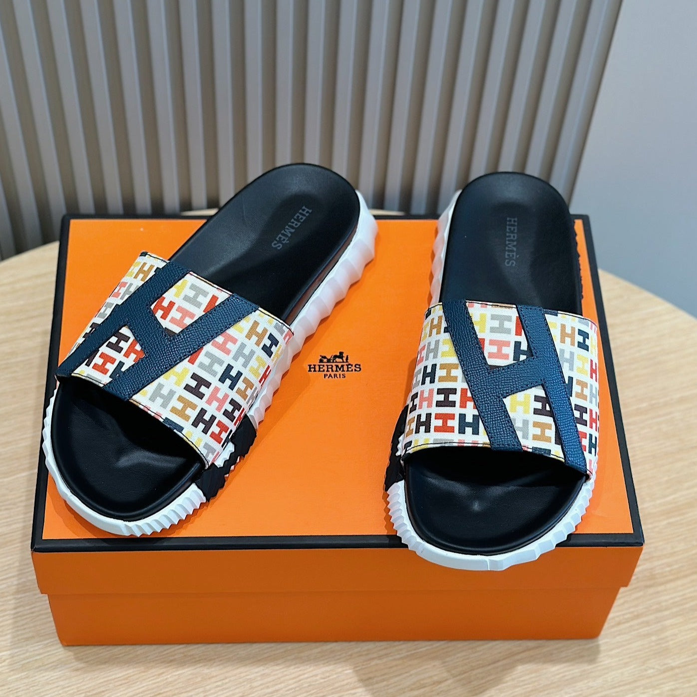 HM SLIPPERS BLACK AND WHITE MONOGRAM CANVAS