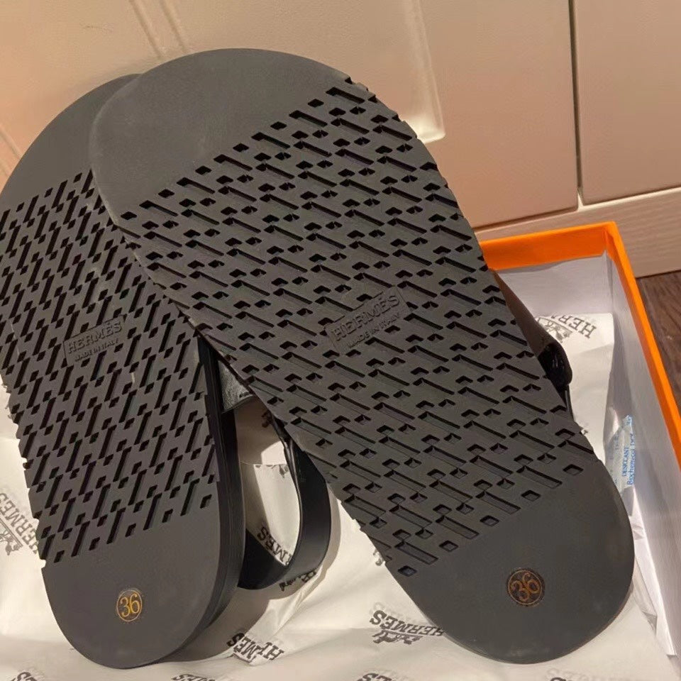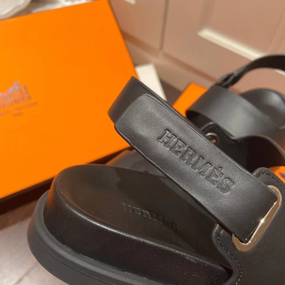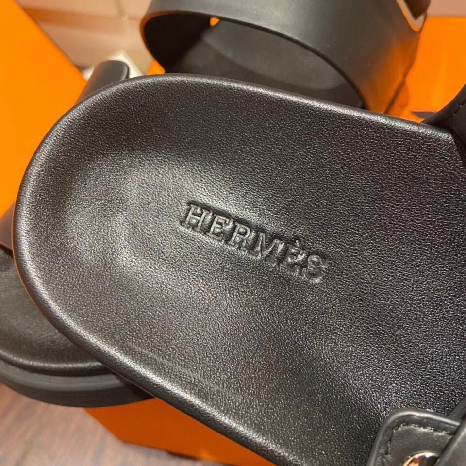 HM CHYPRE SANDAL BLACK WITH H-BUCKLECALFSKIN