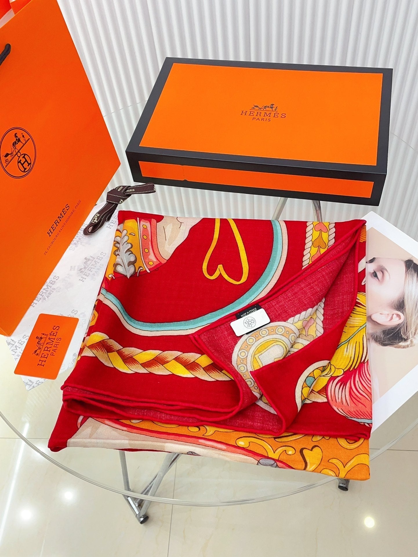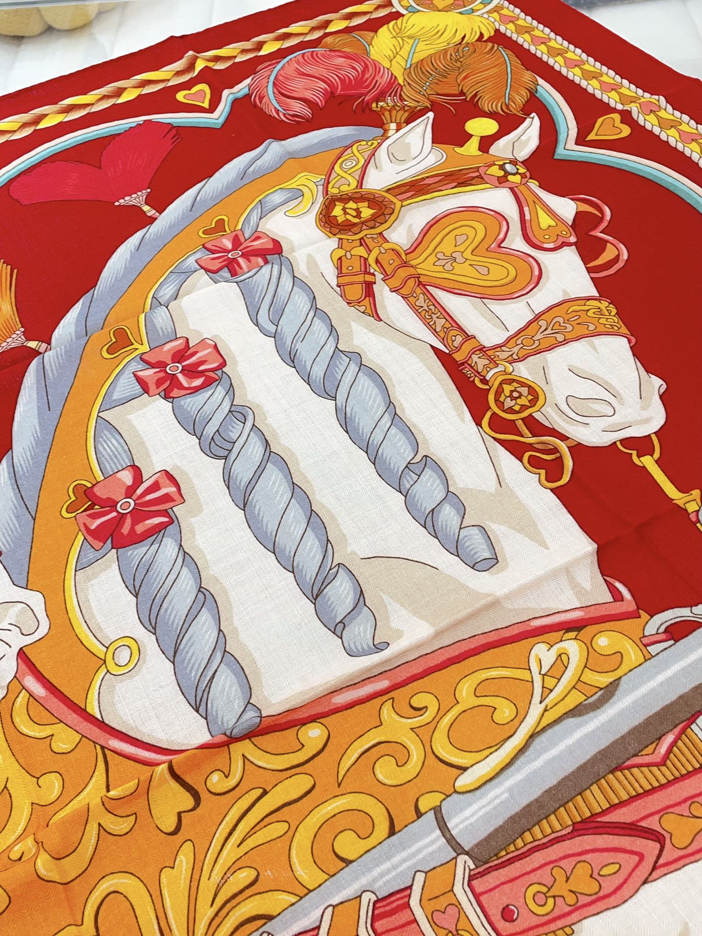 Carré Harnais De Cœur Scarf 140 CM In Red Colorful Cashmere And Silk 335858