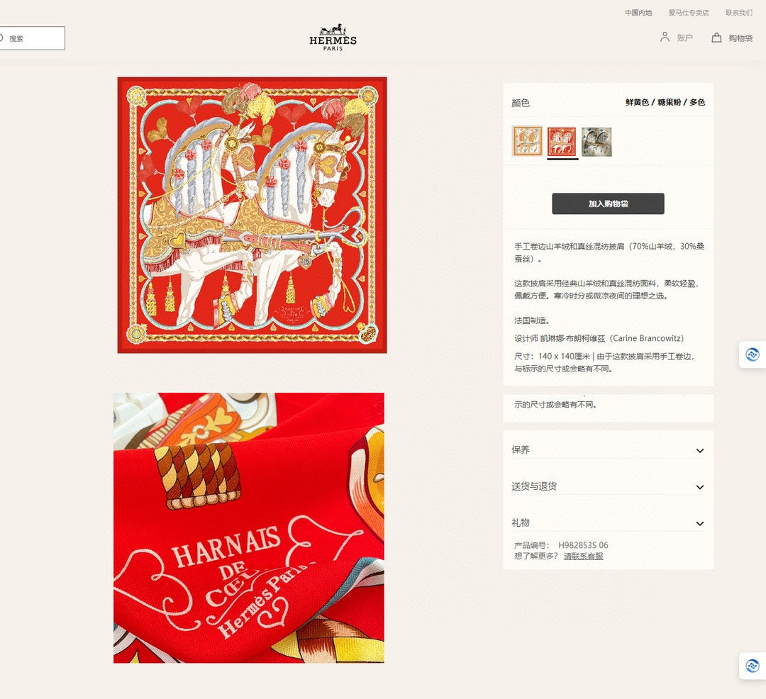 • Material: 70% Cashmere, 30% Silk