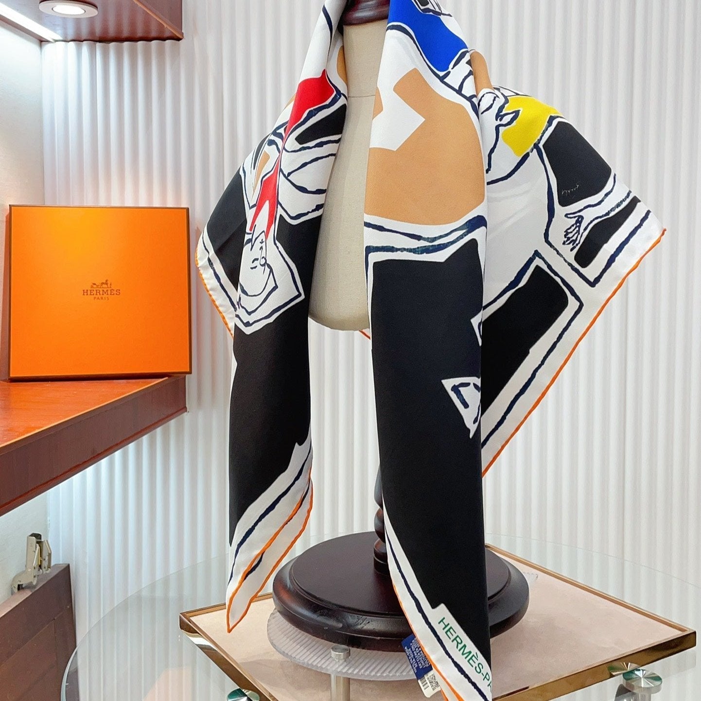 Choregraphie Equestre Scarf 90 CM In Black Colorful Silk Twill 228978