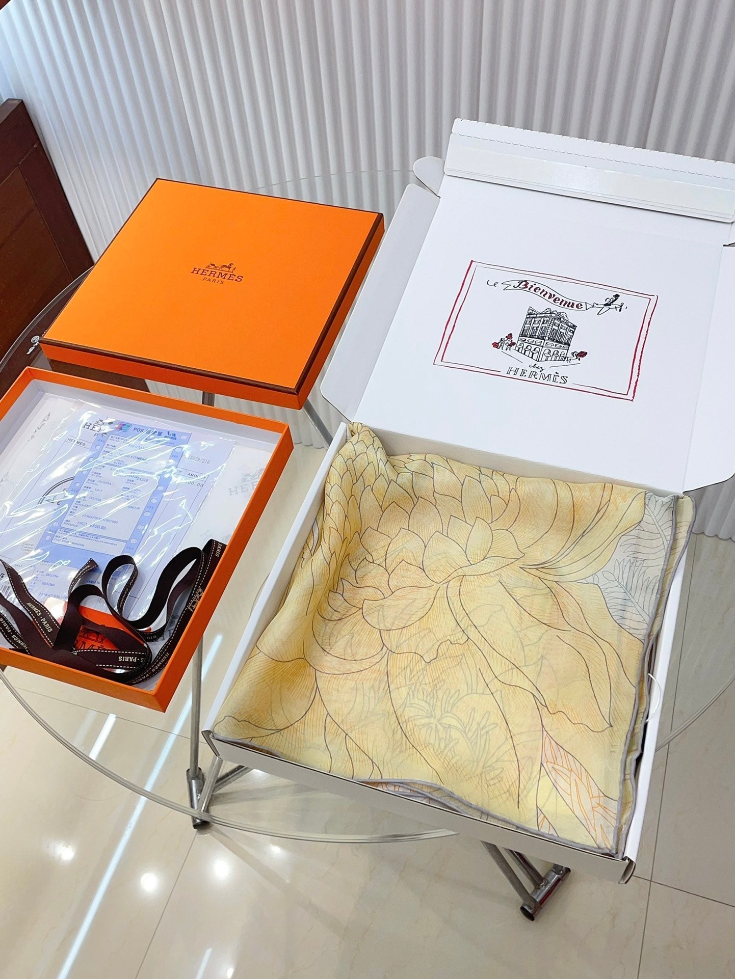 Faubourg Tropical Detail scarf 110 CM In Beige Colorful Silk 208584