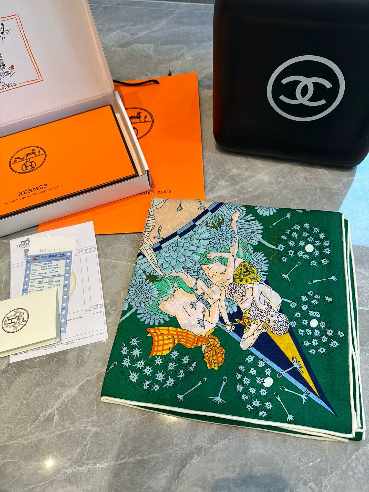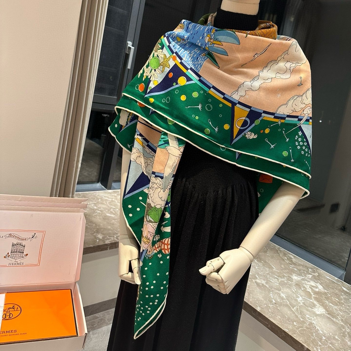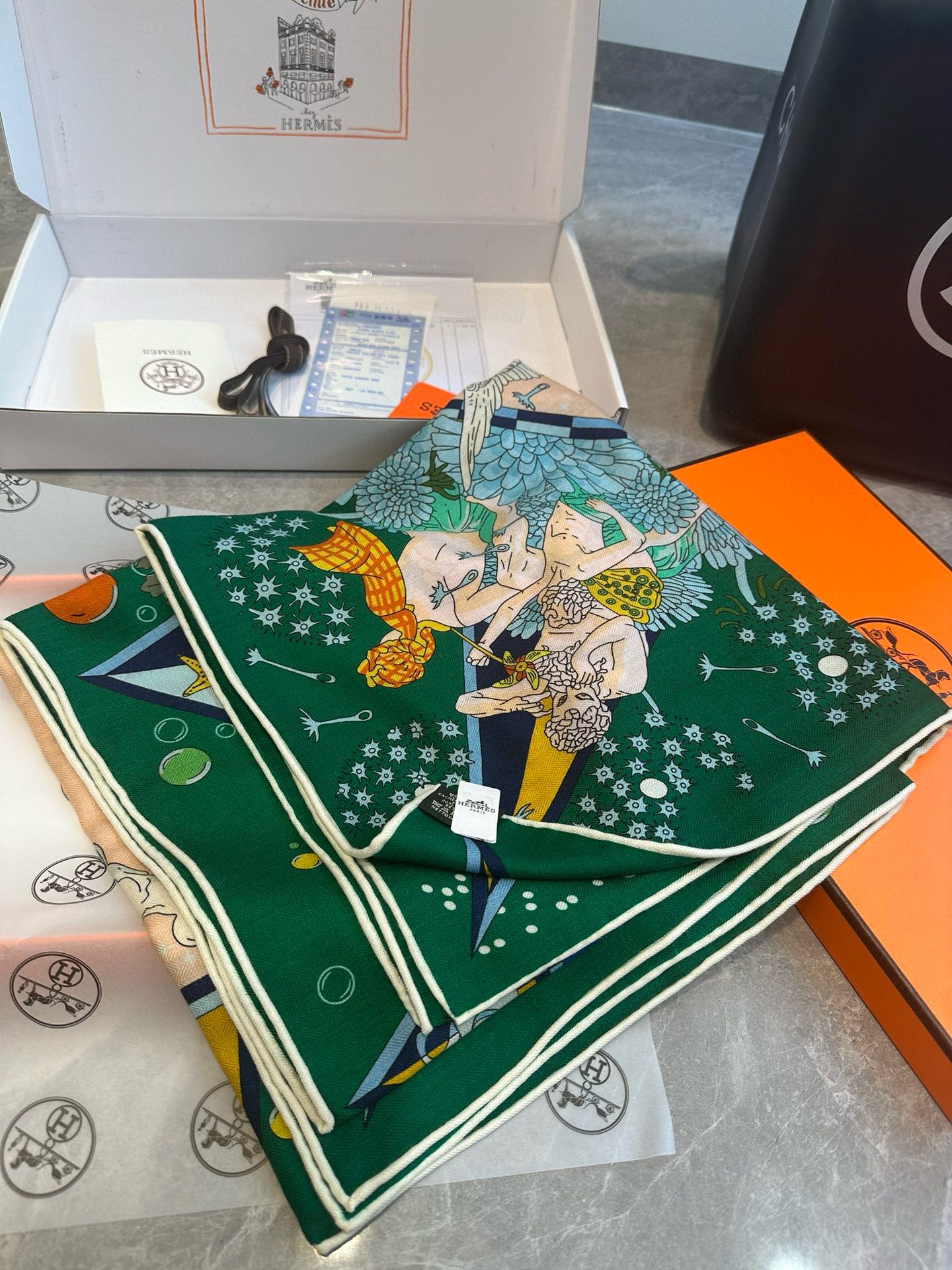 Flagship Scarf 140 CM In Dark Green Colorful Cashmere And Mulberry Silk 376506