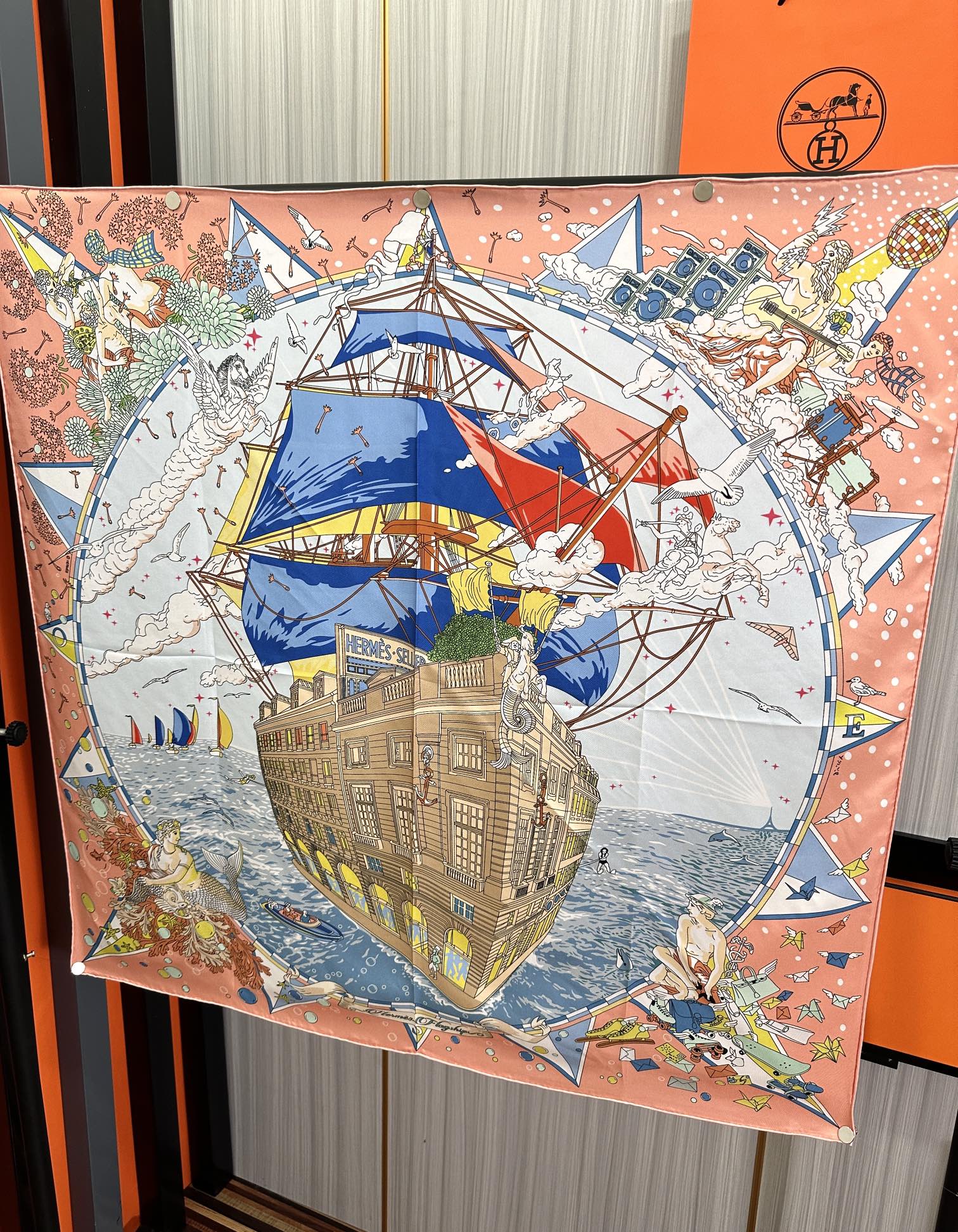 Flagship Silk Scarf 90 CM Pink Orange Colorful
