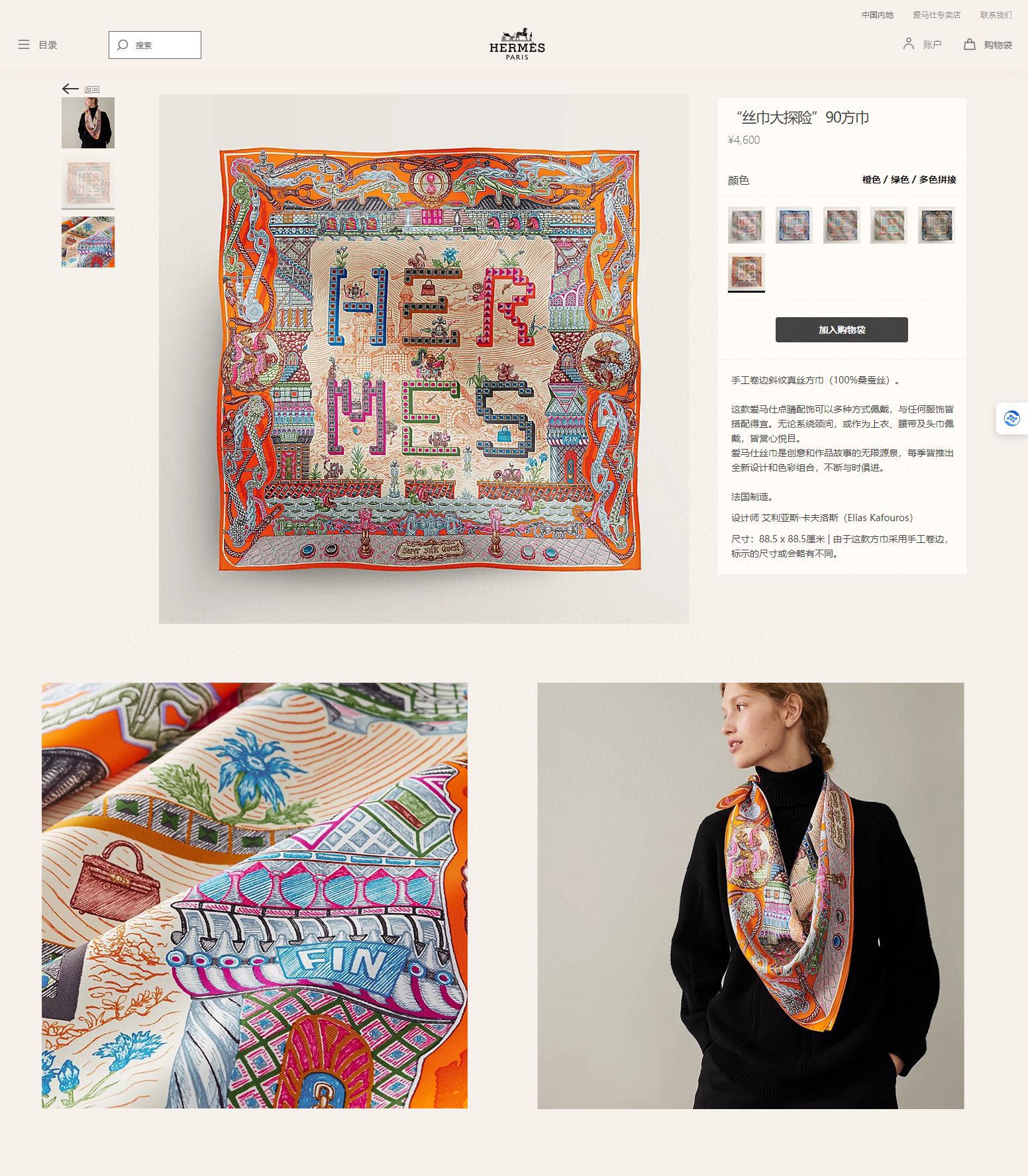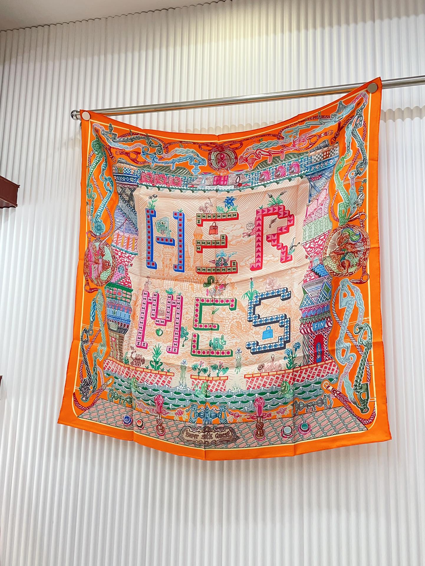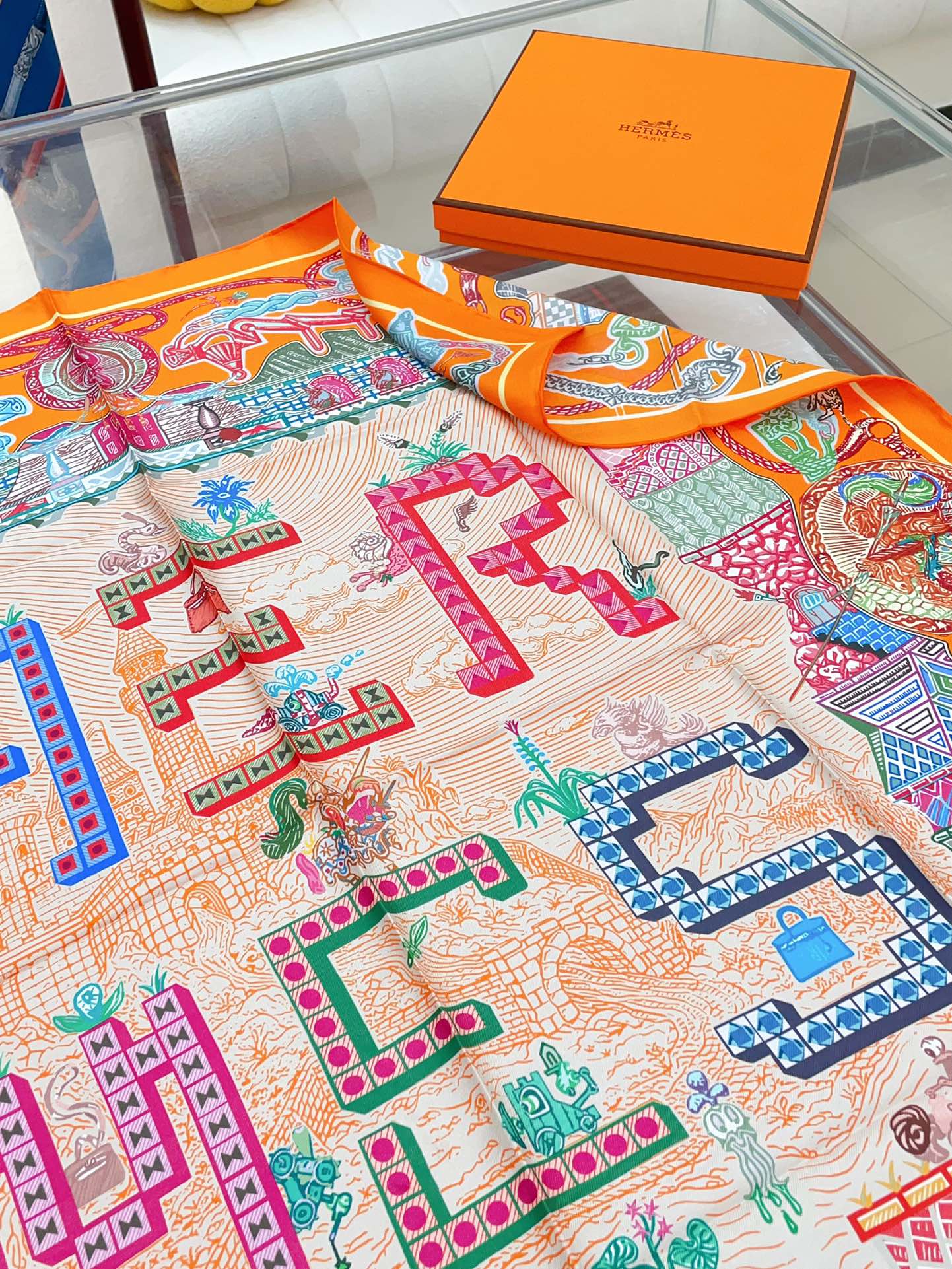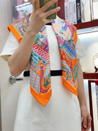 Gavroche Super Silk Quest Détail Scarf 90 CM In Orange Colorful Silk Twill 274212