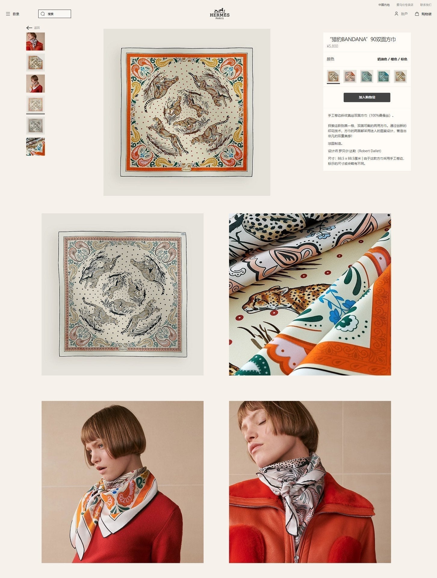 Guepards Bandana Double Face Scarf 90 CM In Colorful Silk 301847