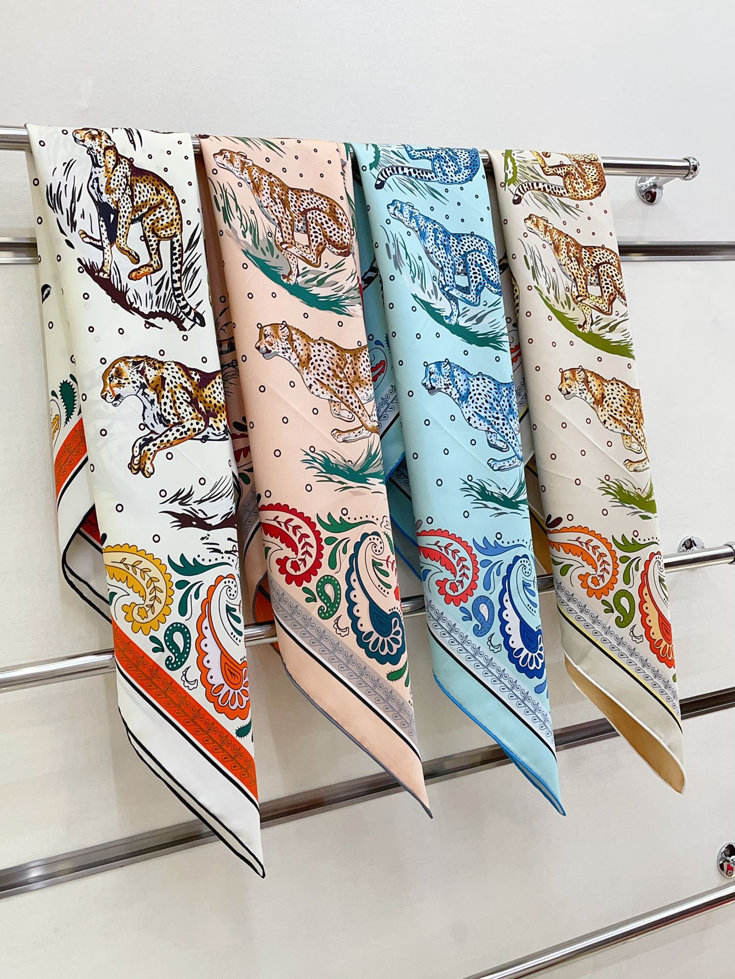 Guepards Bandana Double Face Scarf 90 CM In Colorful Silk 301849