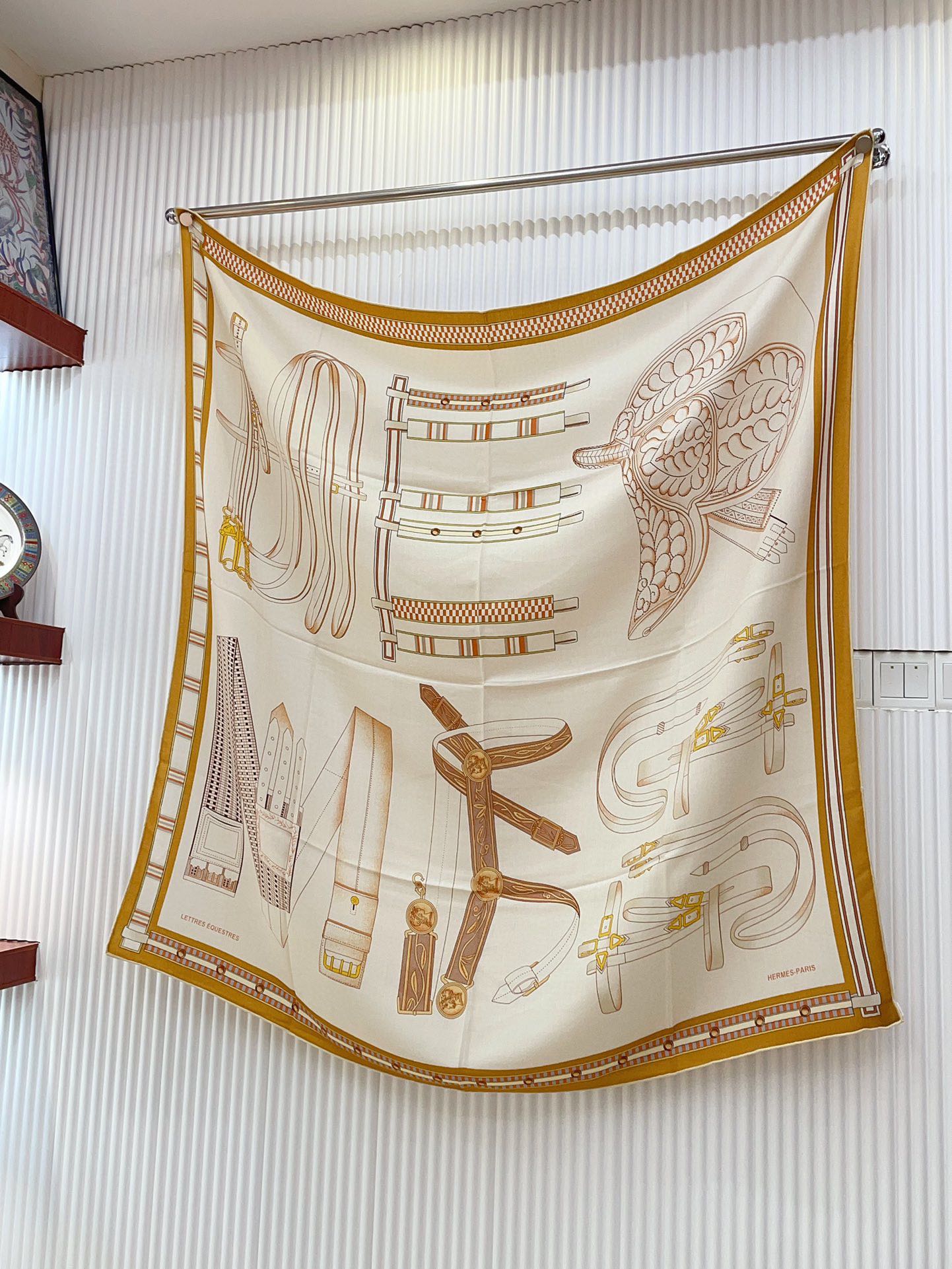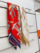 Lettres Equestres Shawl 140 CM White Colorful Cashmere And Silk 398259