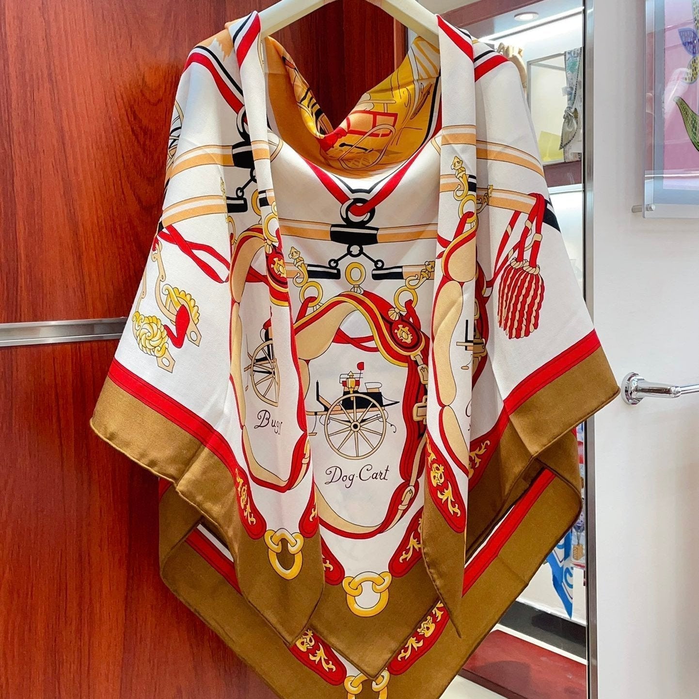 Palonniers Scarf 135 CM In Brown Colorful Cashmere And Silk 327474