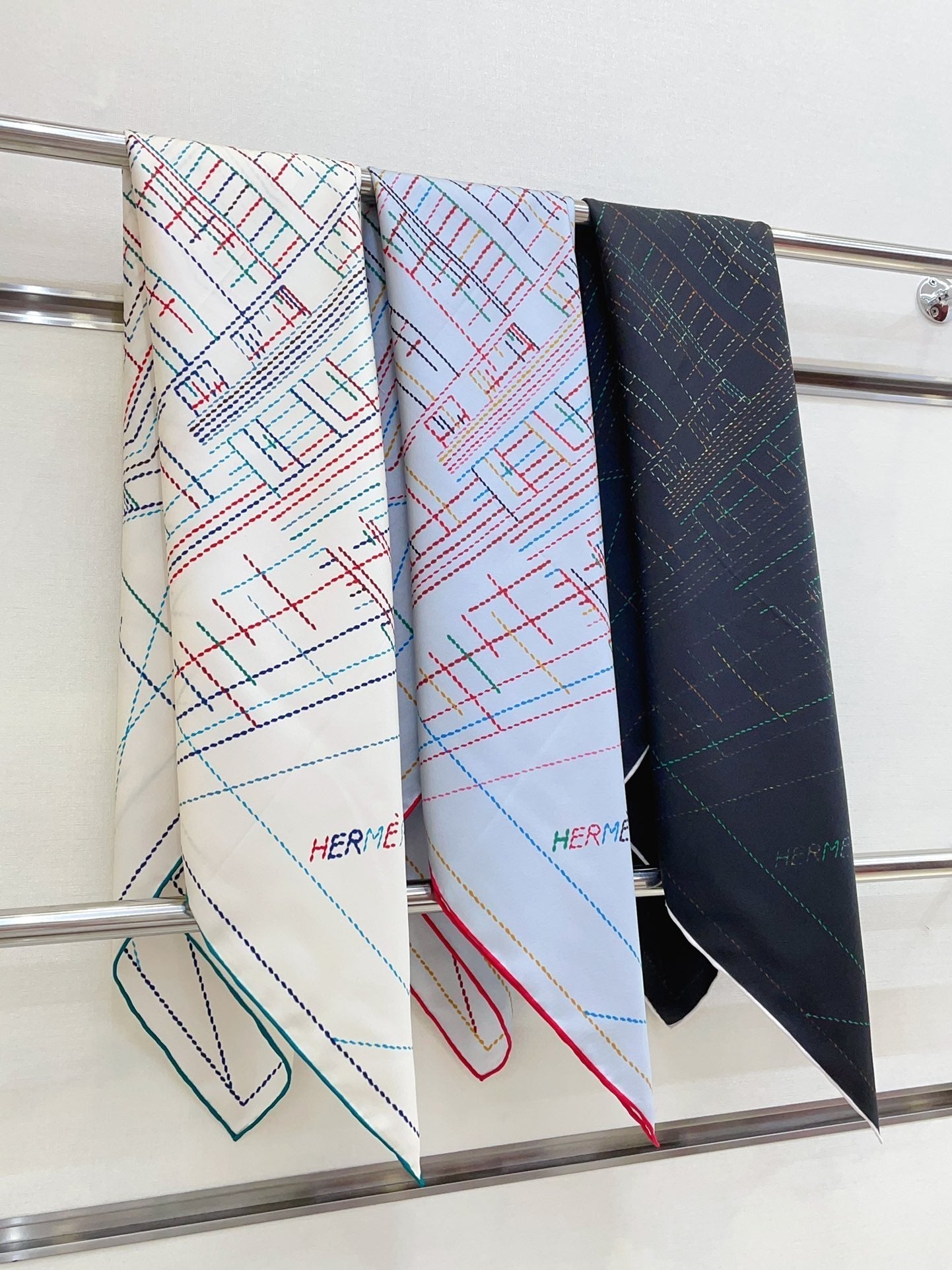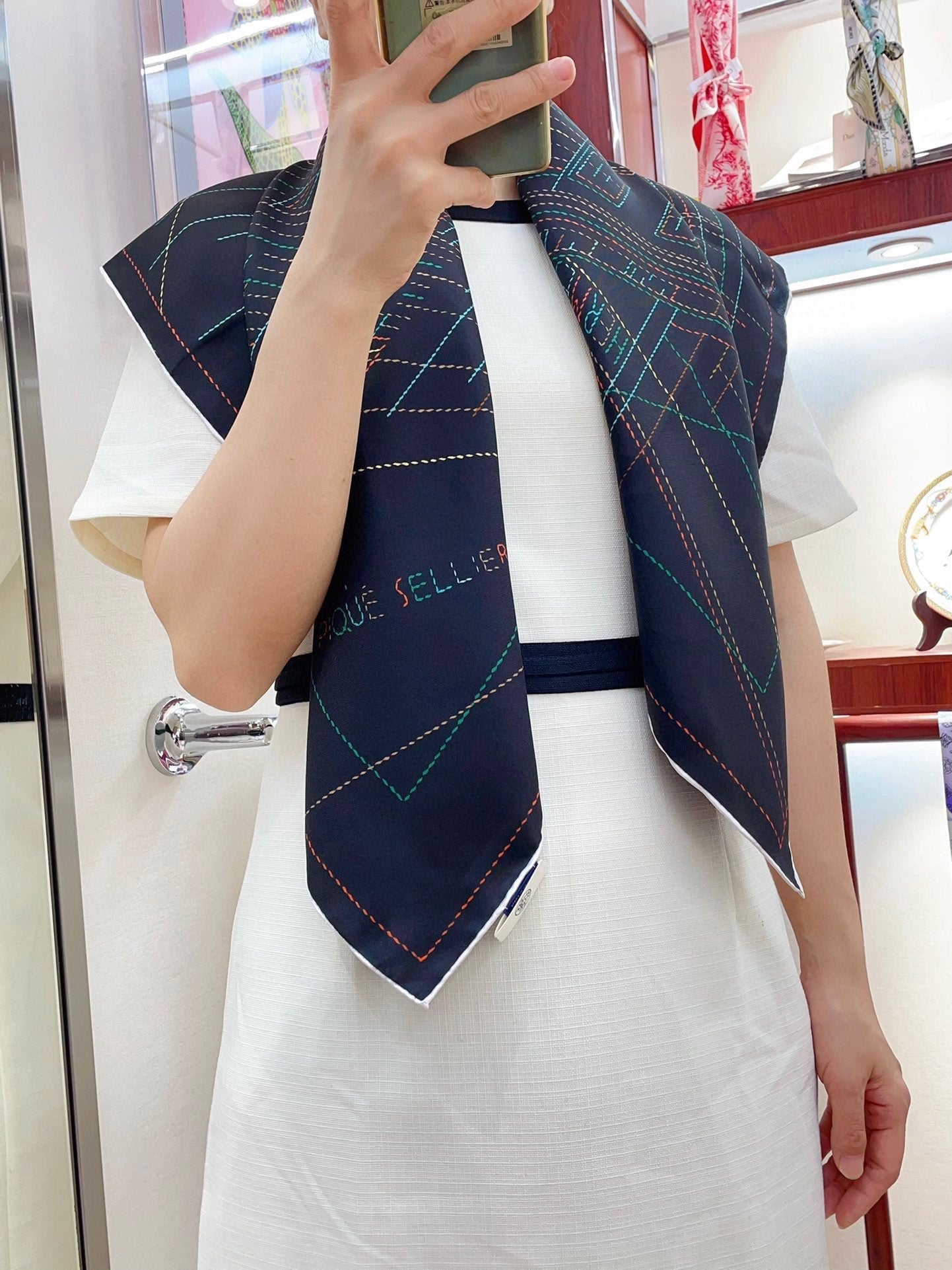 Pique Sellier Shawl 90 CM In Black Colorful Silk Twill 312868