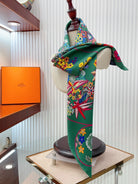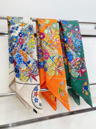 Planifleurs scarf 90 CM In Green Colorful Silk Twill 249921
