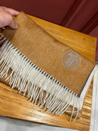 Scarf 190 CM In Dark Beige Mix Grey White Cashmere