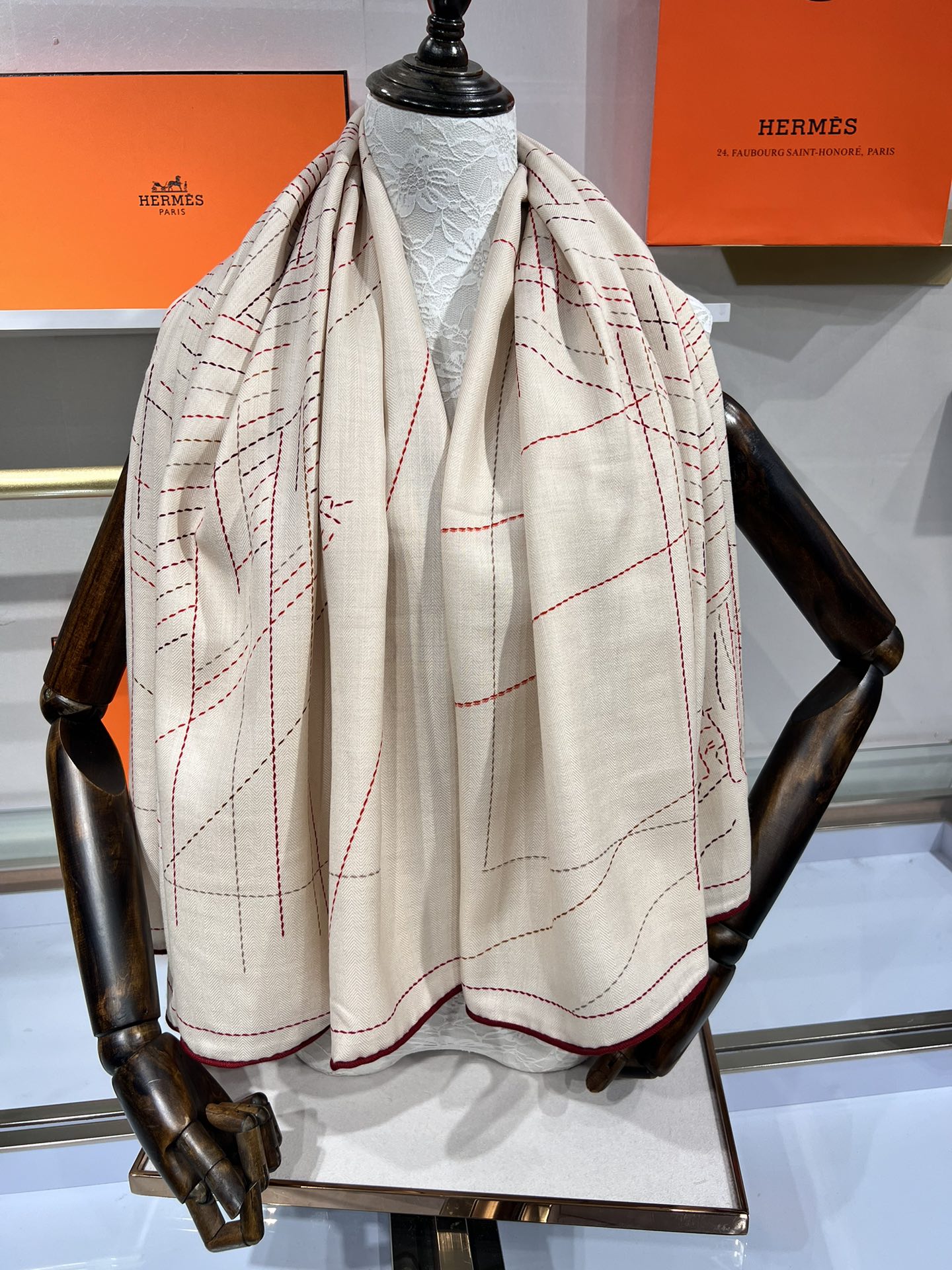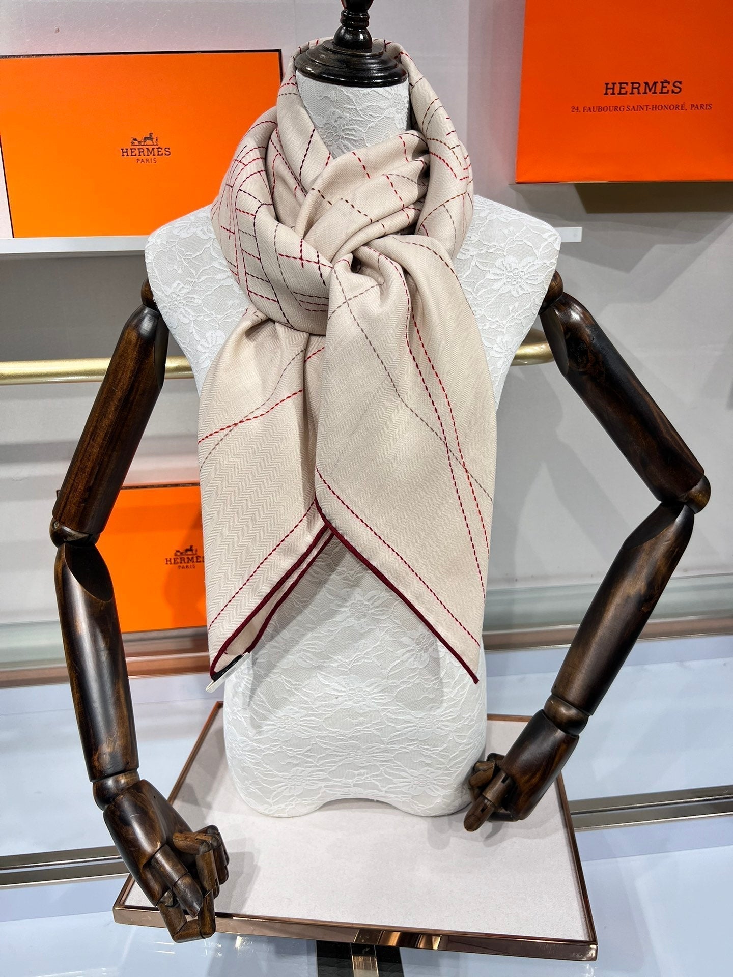 SCARF 135 CM BEIGE MIX RED 387967
