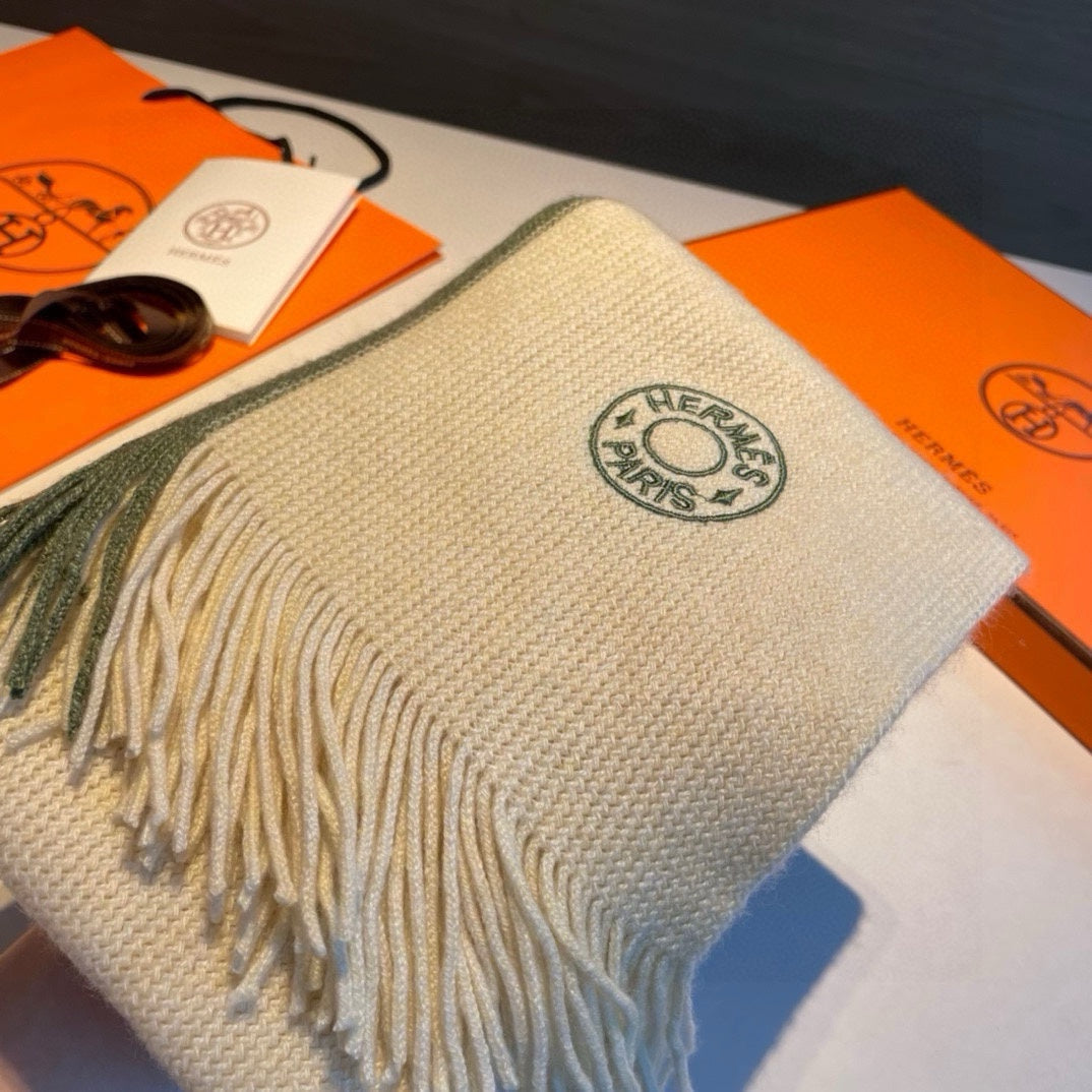 Hermes Libris Scarf 140 Ivory Cashmere Silk
