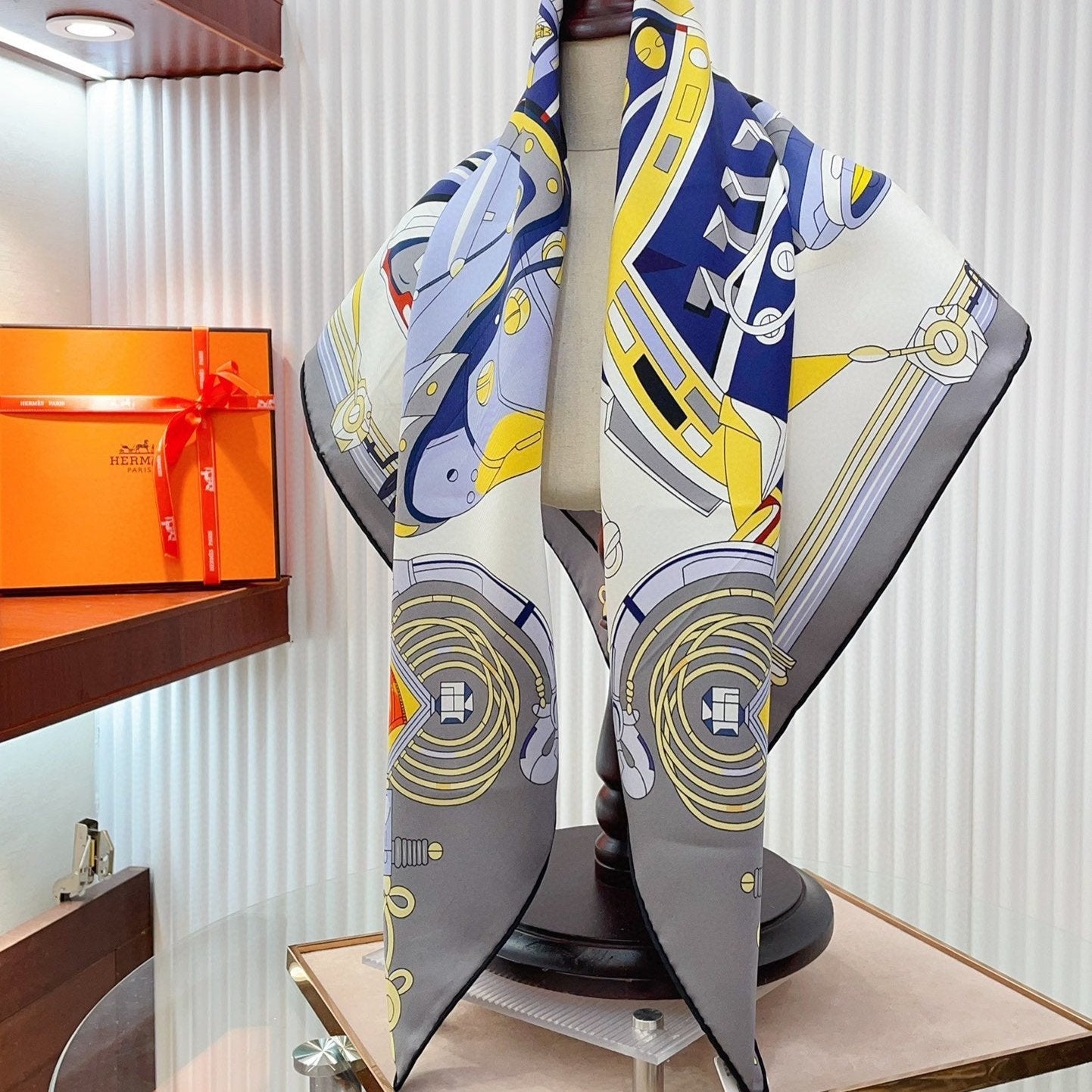 Parade Scarf 90 CM In White Grey Colorful Silk Twill 310306