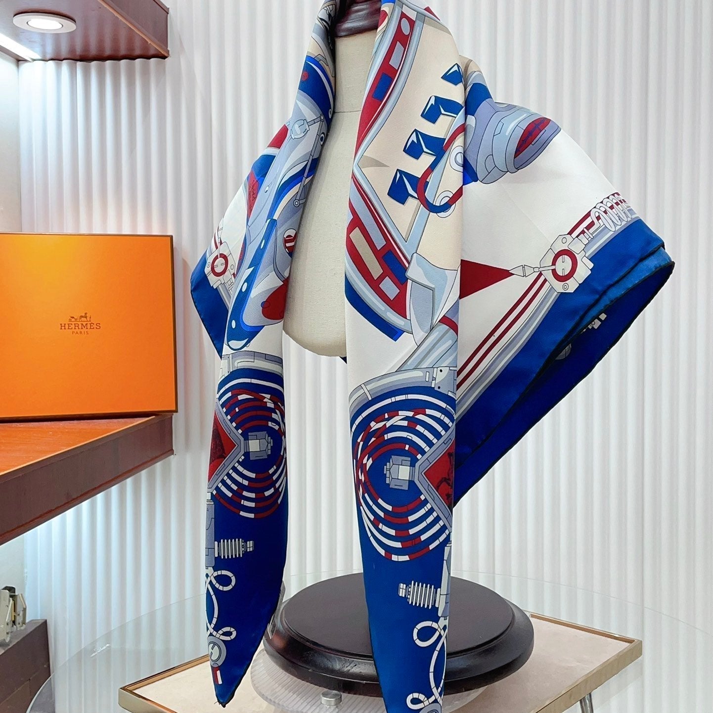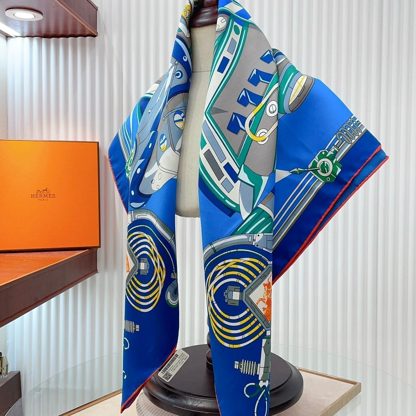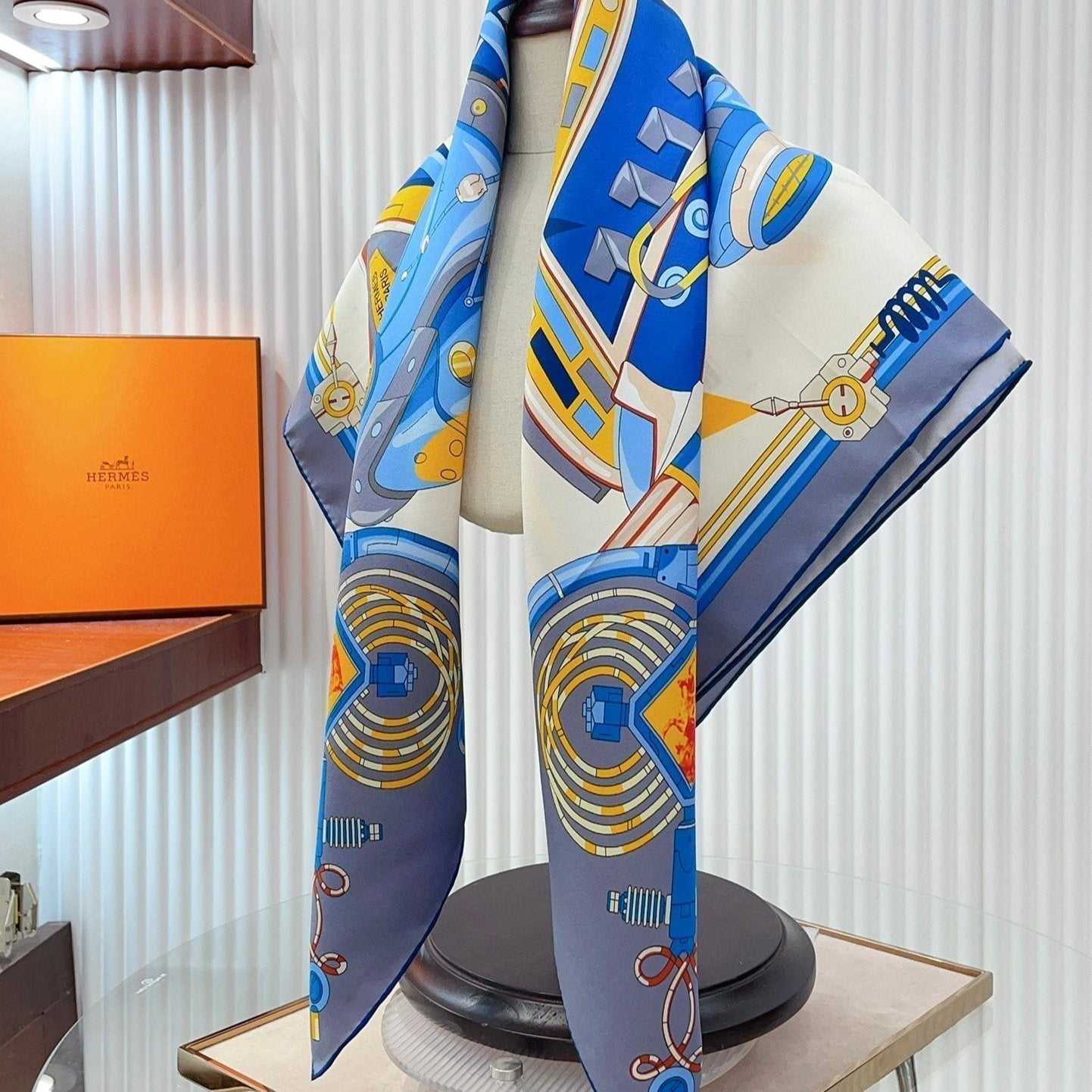 Parade Scarf 90 CM In Blue Colorful Silk Twill 310307