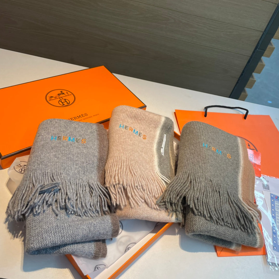 Scarf 180 CM Grey Green Mix White Brown Cashmere Knit 398250