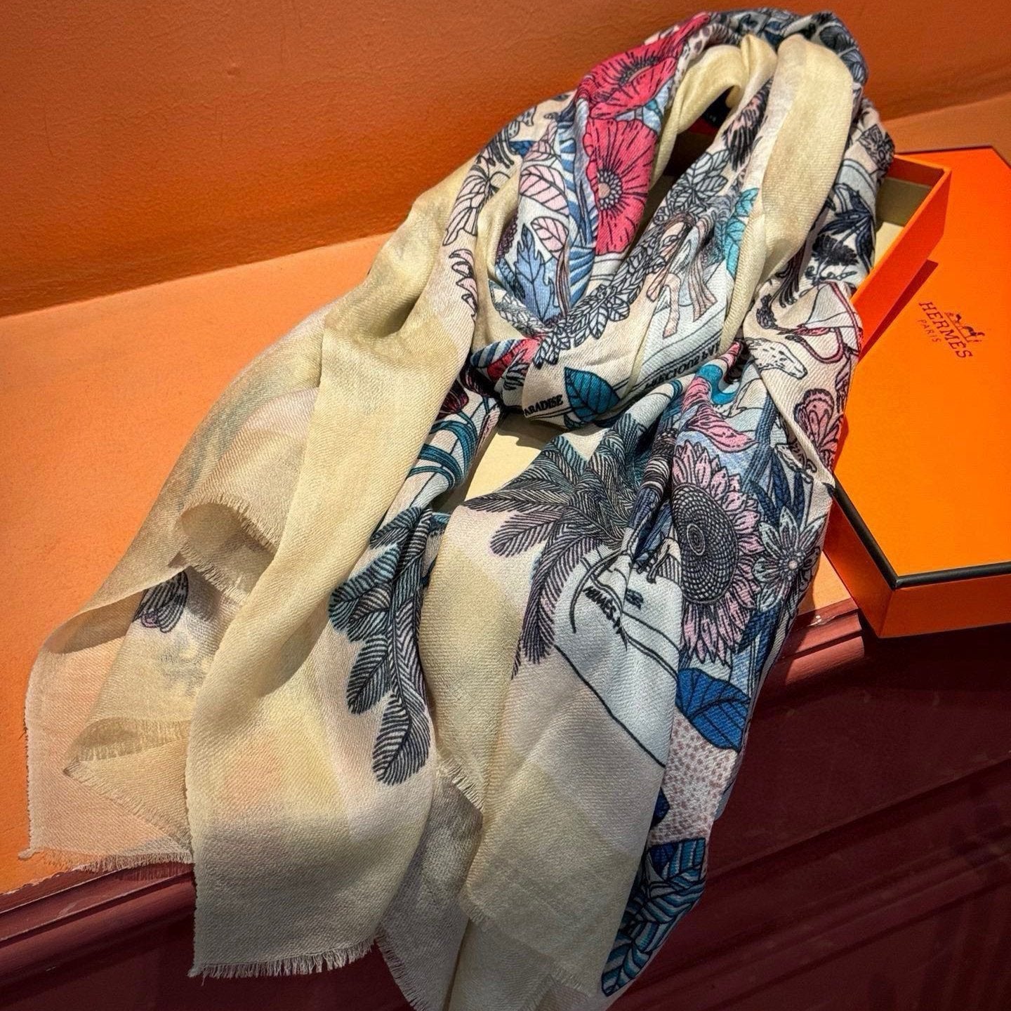 Faubourg Tropical Scarf 135 CM Grey White Cashmere And Silk