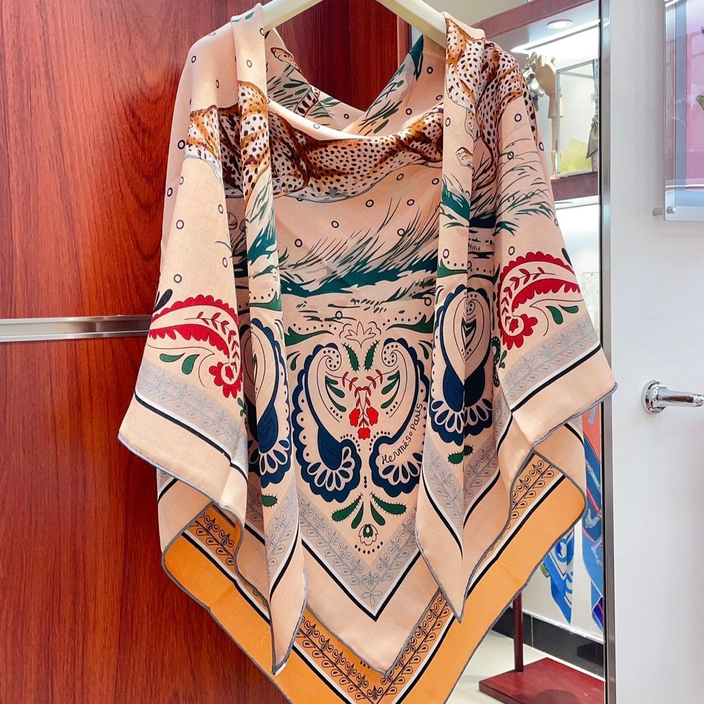 HERMES 25S SCARF 135 IN SILK AND CASHMERE 735831