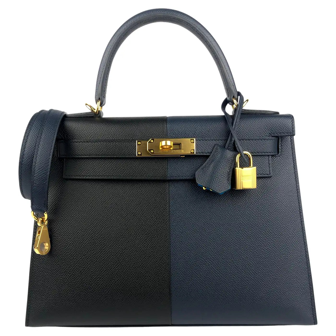 HM KELLY 32cm BLACK AND BLUE EPSOM LEATHER GOLD HARDWARE