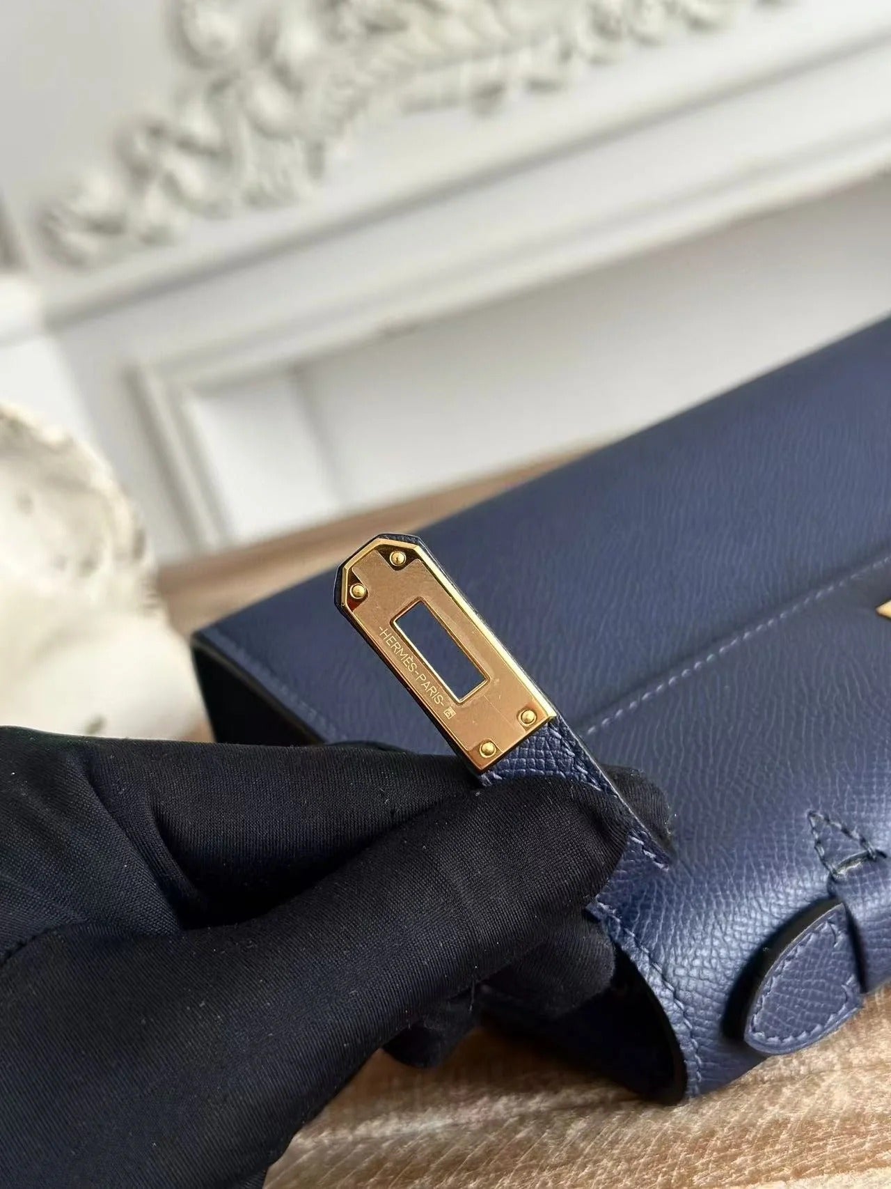 HM KELLY MINI POCHETTE 22 IN NAVY BLUE CALFSKIN
