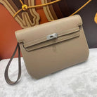 KELLY POCHETTE BAG 25 IN BROWN EPSOM LEATHER WITH PALLADIUM HARDWARE