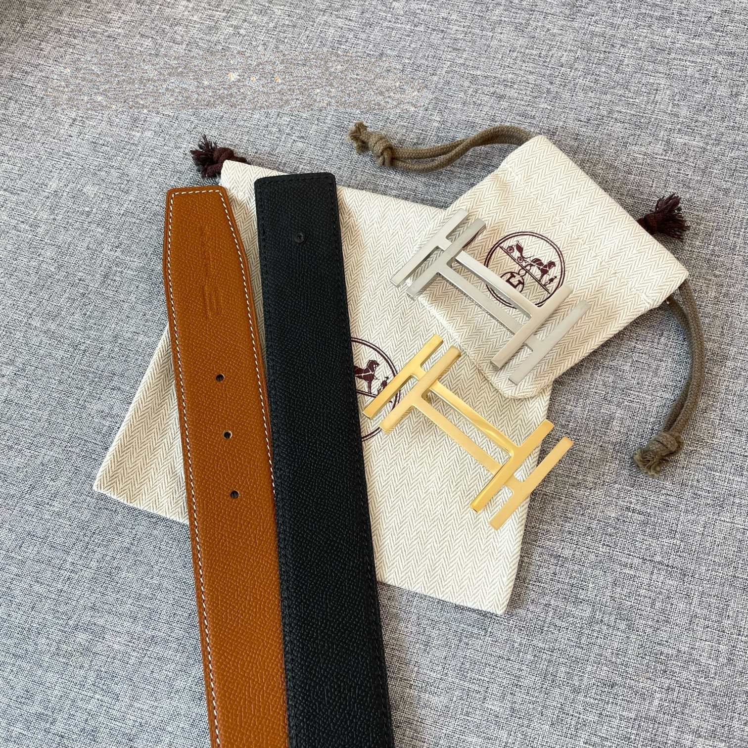 • H Buckle in permabrass plated metal.