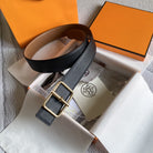 H BELT GOLD BUCKLE BROWN BLACK LEATHER RIVERSIBLE 3.8CM
