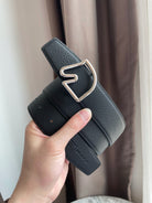 H BELT HORSE BUCKLE BLACK LEATHER REVERSIBLE 3.8CM