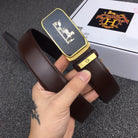 H BELT GOLD BUCKLE 3.5 MM SMOOTH BROWN LEATHER