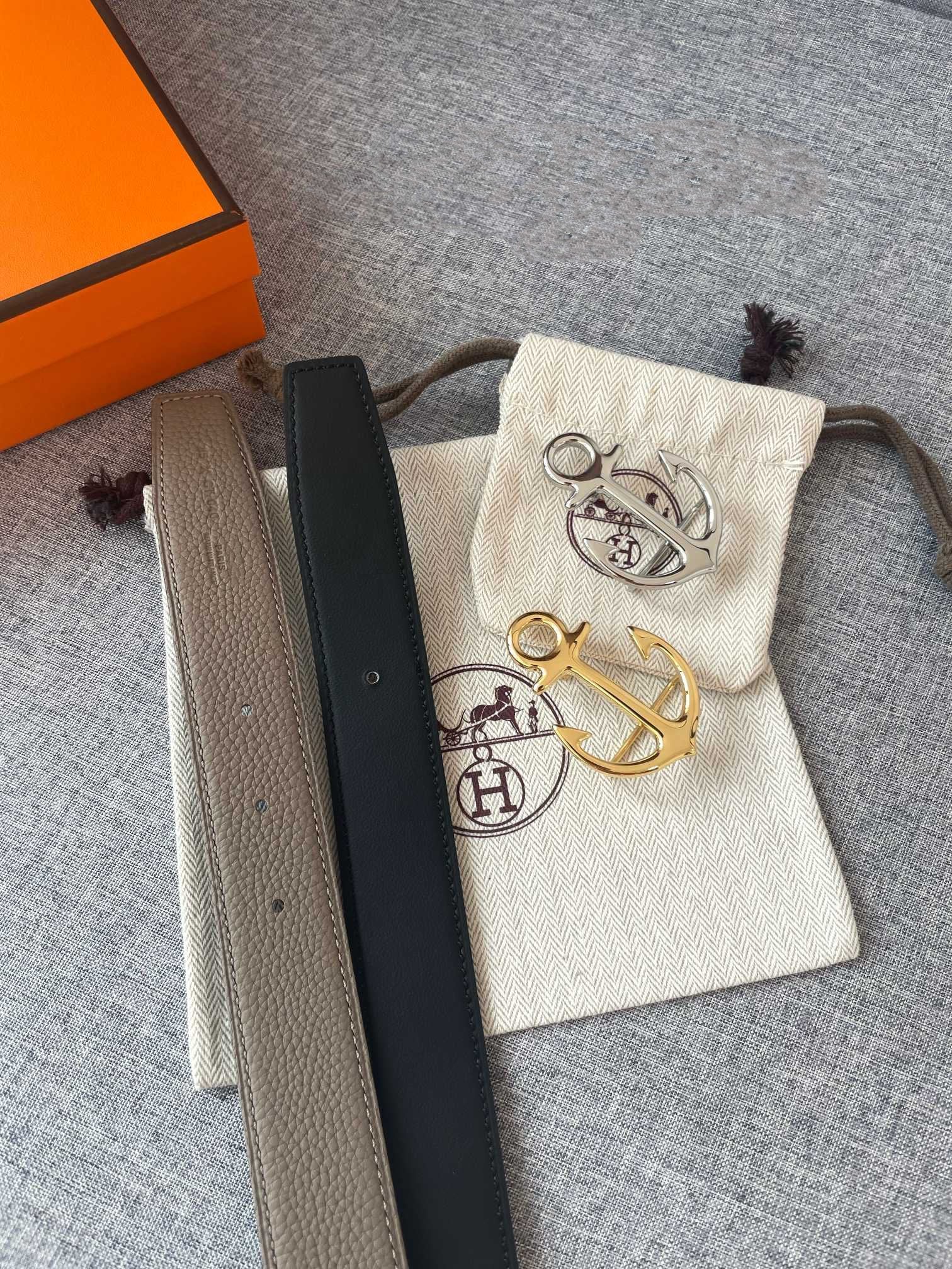 H CARGO BELT 32MM TIN GREY BLACK LEATHER