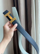 H CONSTANCE BELT 38MM GOLD BUCKLE PRUSSIAN BLUE SKY BLUE LEATHER