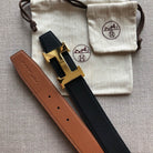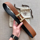 H CONTANCE BELT 38MM GOLD BUCKLE BROWN BLACK LEATHER