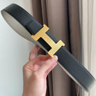 H CONTANCE BELT 38MM GOLD BUCKLE GREY BLACK LEATHER