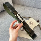 H MARIN REVERSIBLE BELT 32MM SILVER BUCKLE BLACK DARK GREEN LEATHER