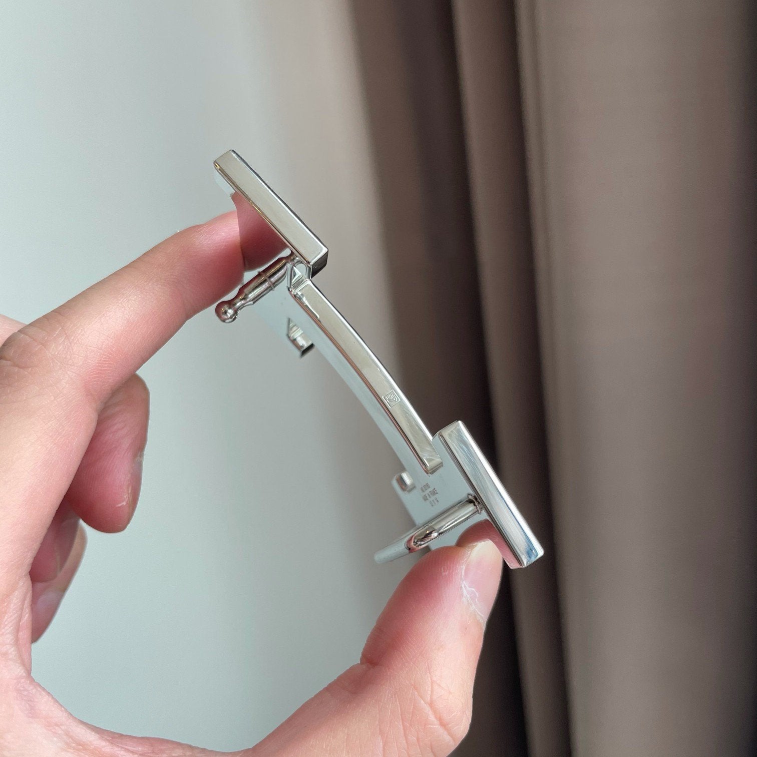• H Buckle in permabrass plated metal.