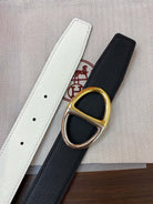 H TWIN REVERSIBLE BELT 32MM GOLD SILVER BUCKLE WHITE BLACK LEATHER