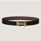 HM H au Carre Buckle Belt 32mm Black Chocolate Leather 187769