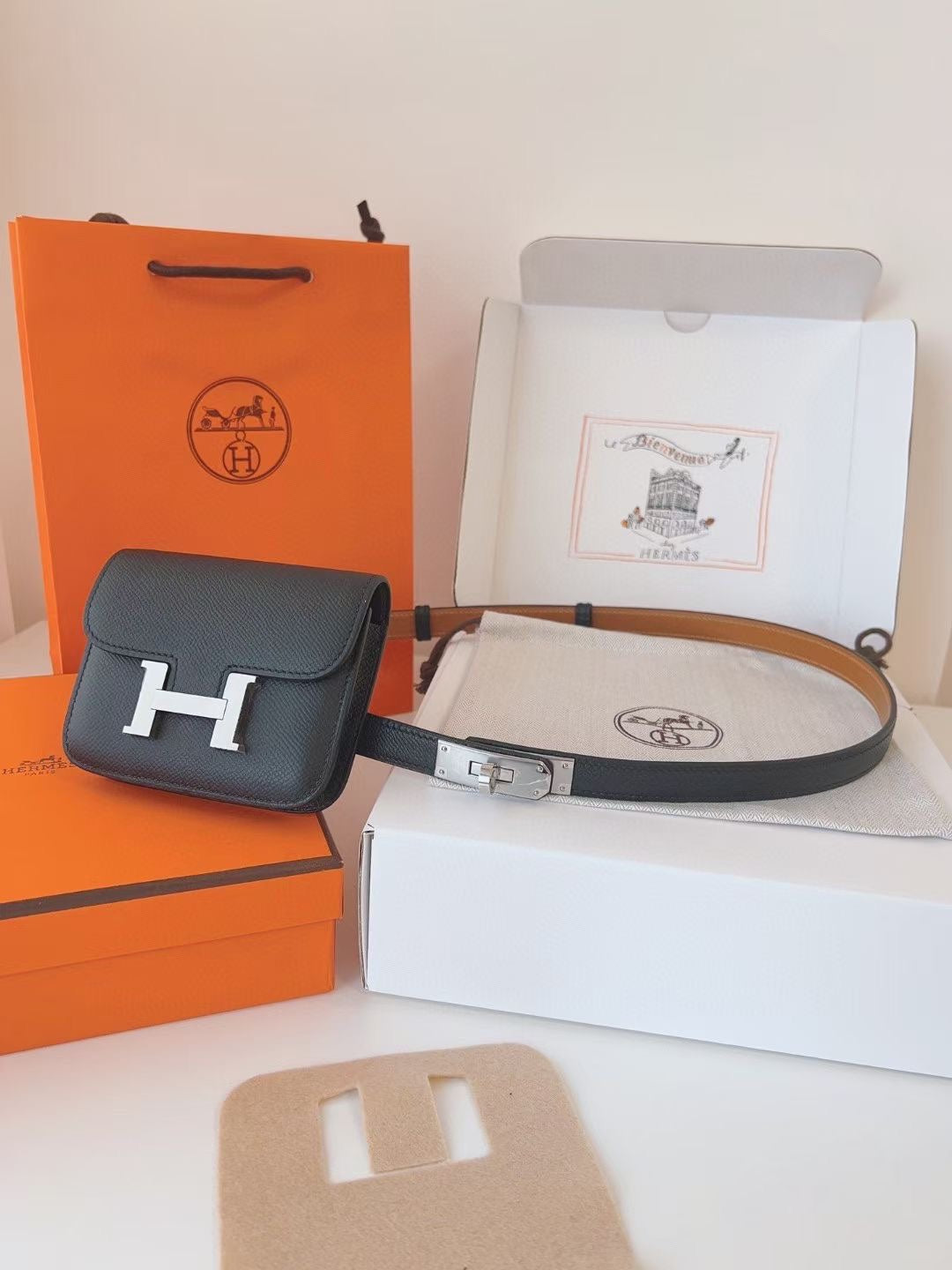 hm kelly belt 18mm with constance slim black epsom silver hardware