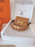 hm kelly belt 18mm with constance slim brown epsom gold hardware