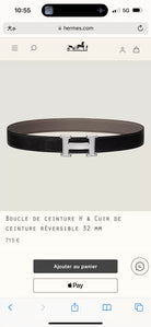 HM Silver H Buckle & Reversible 32mm Belt Beige mix Black leather 124653