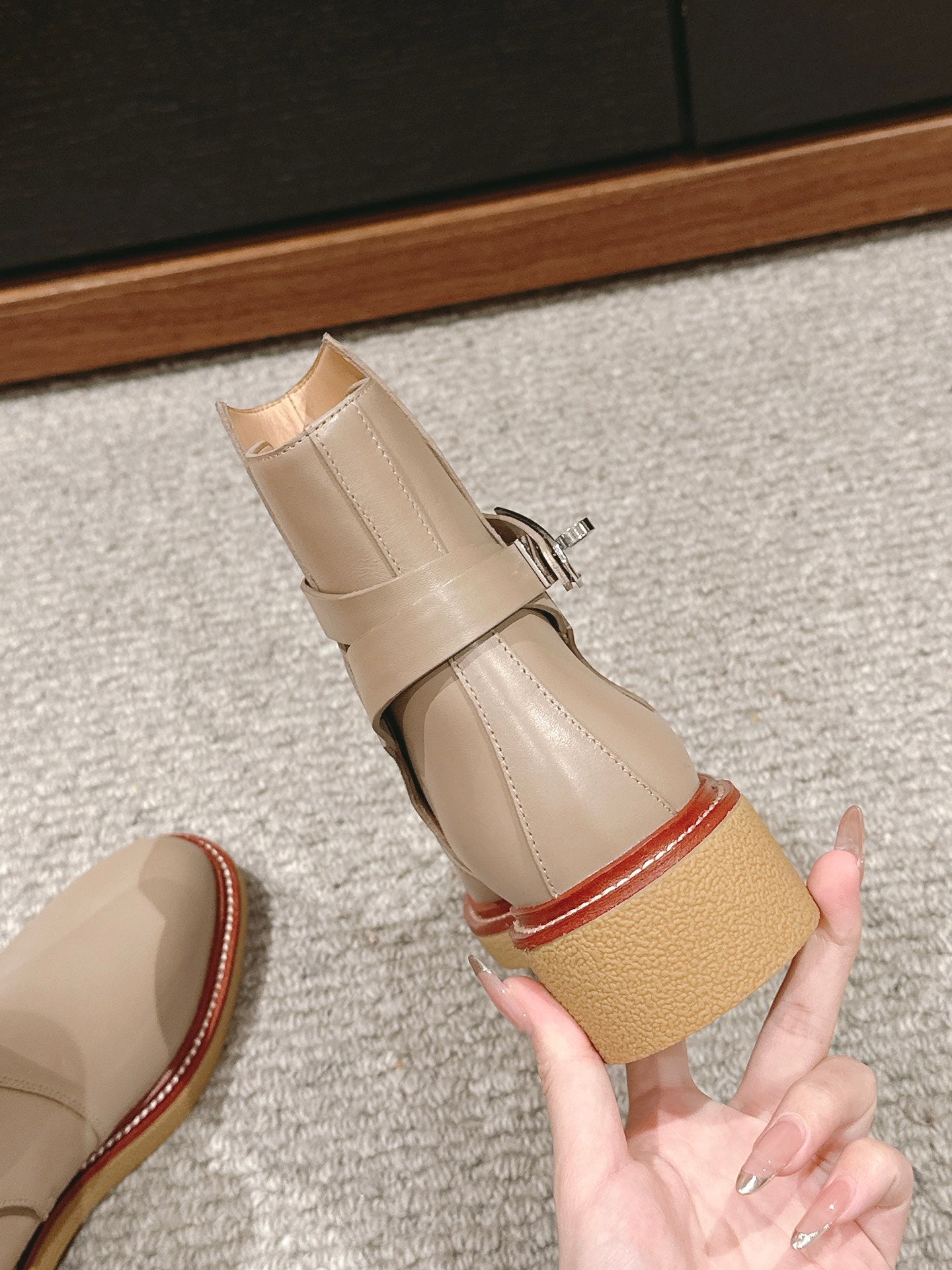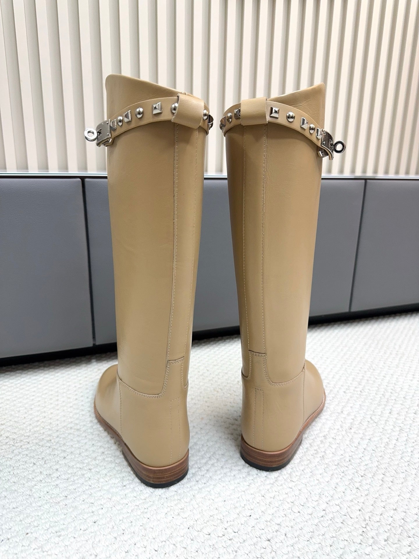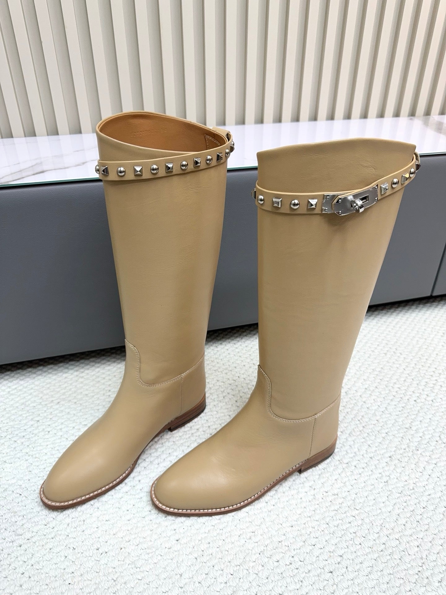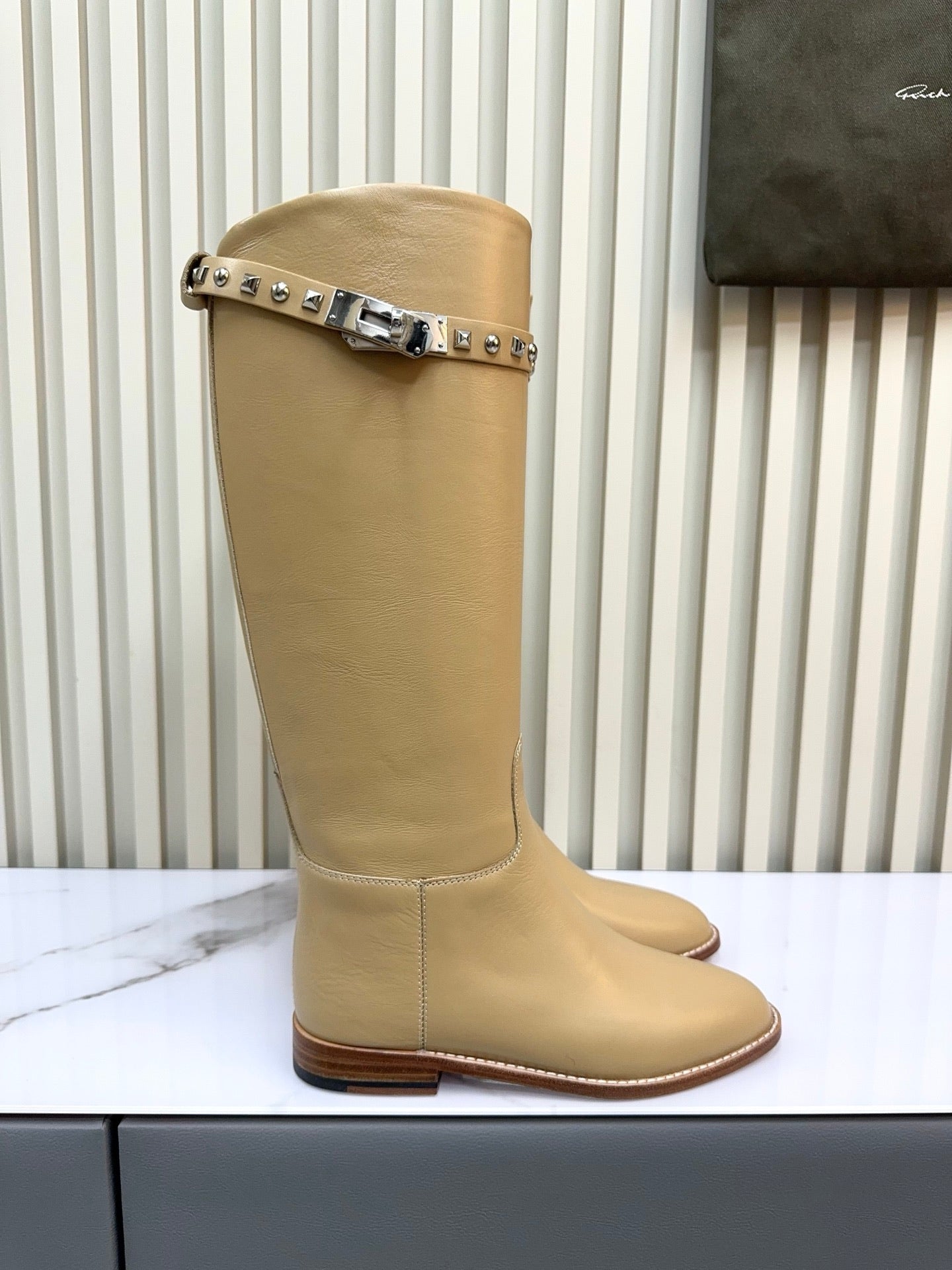 HM 25ss Kelly Buckle Riding Boots Dark Beige Cowhide 576122