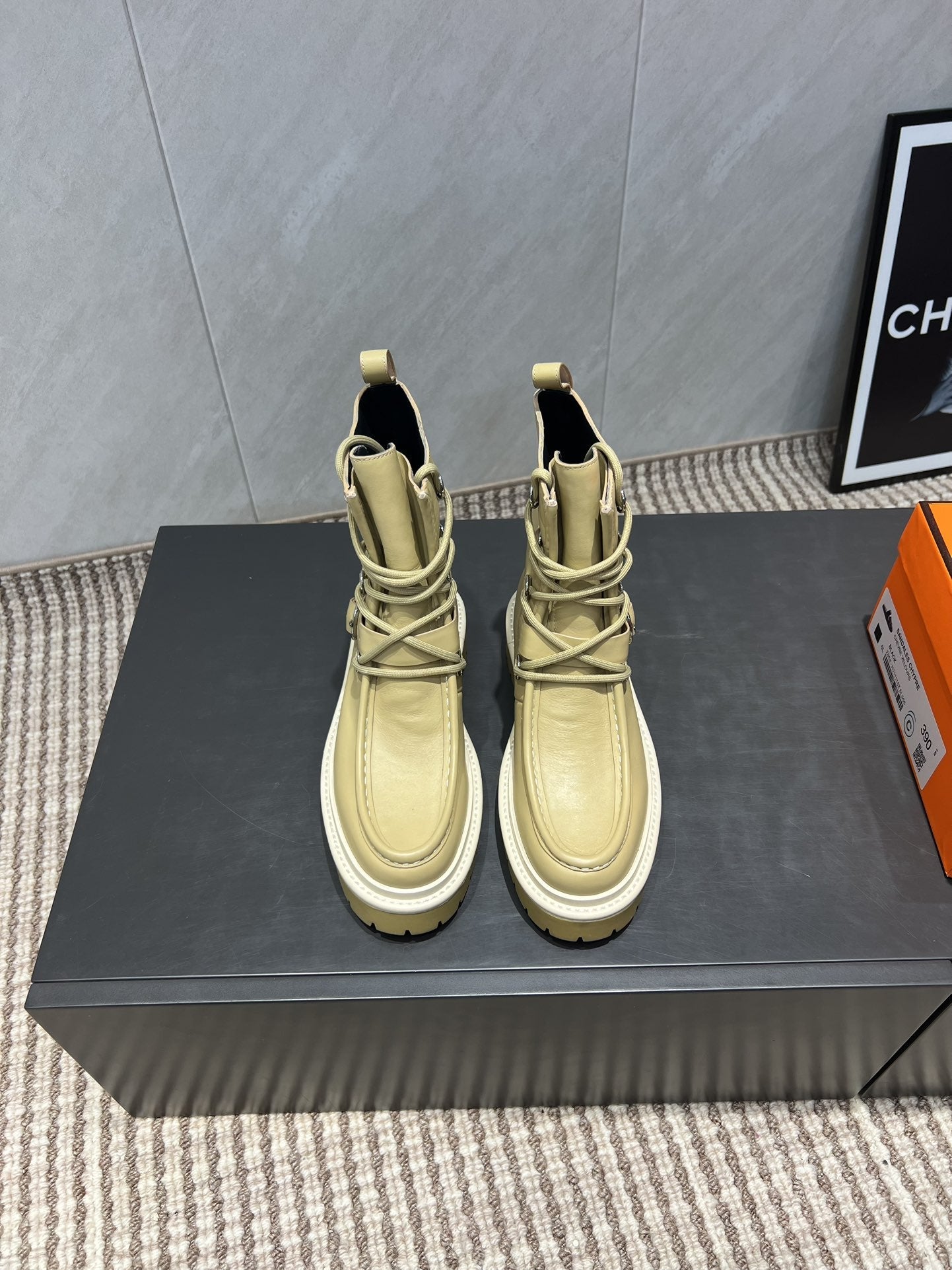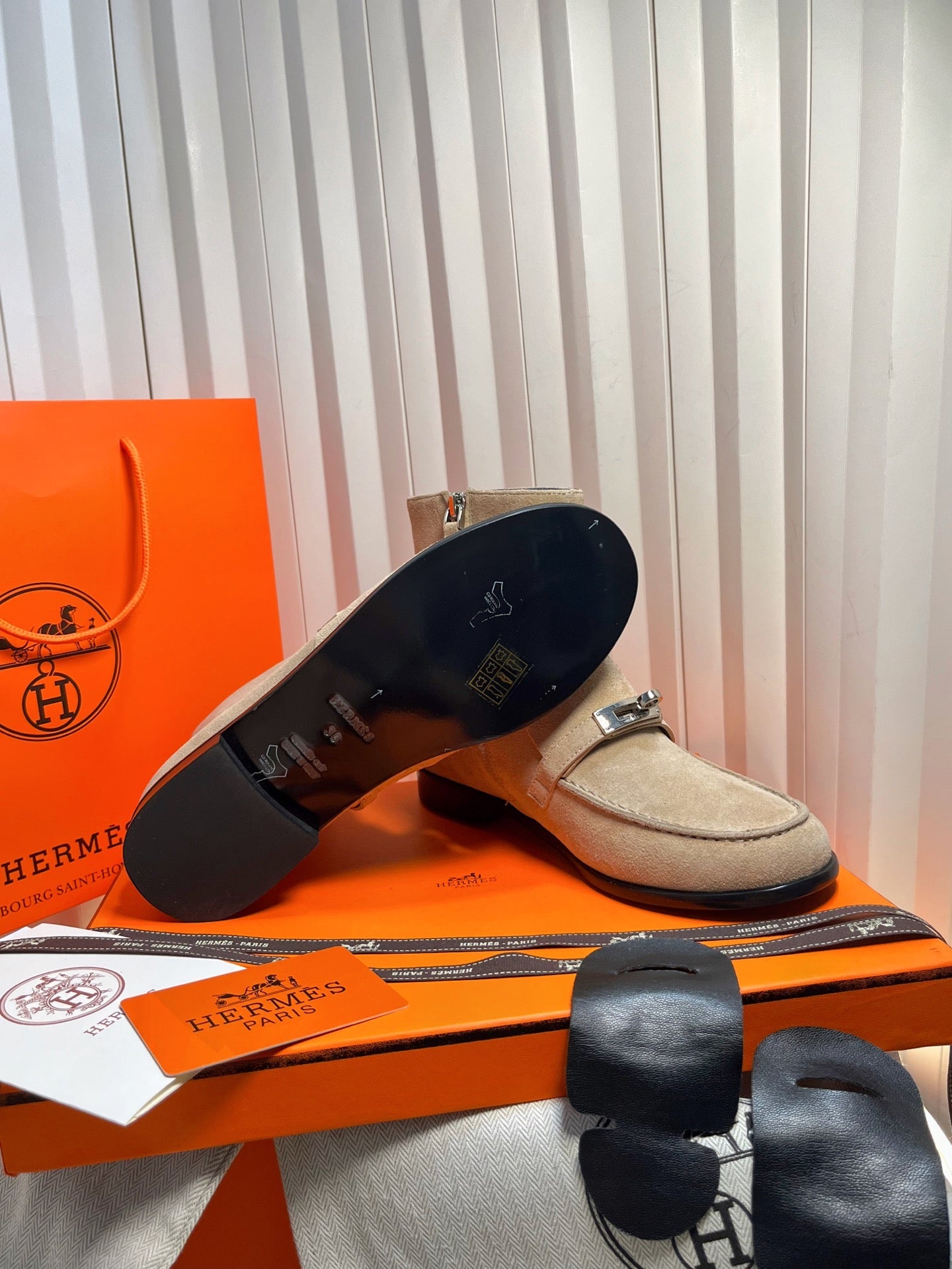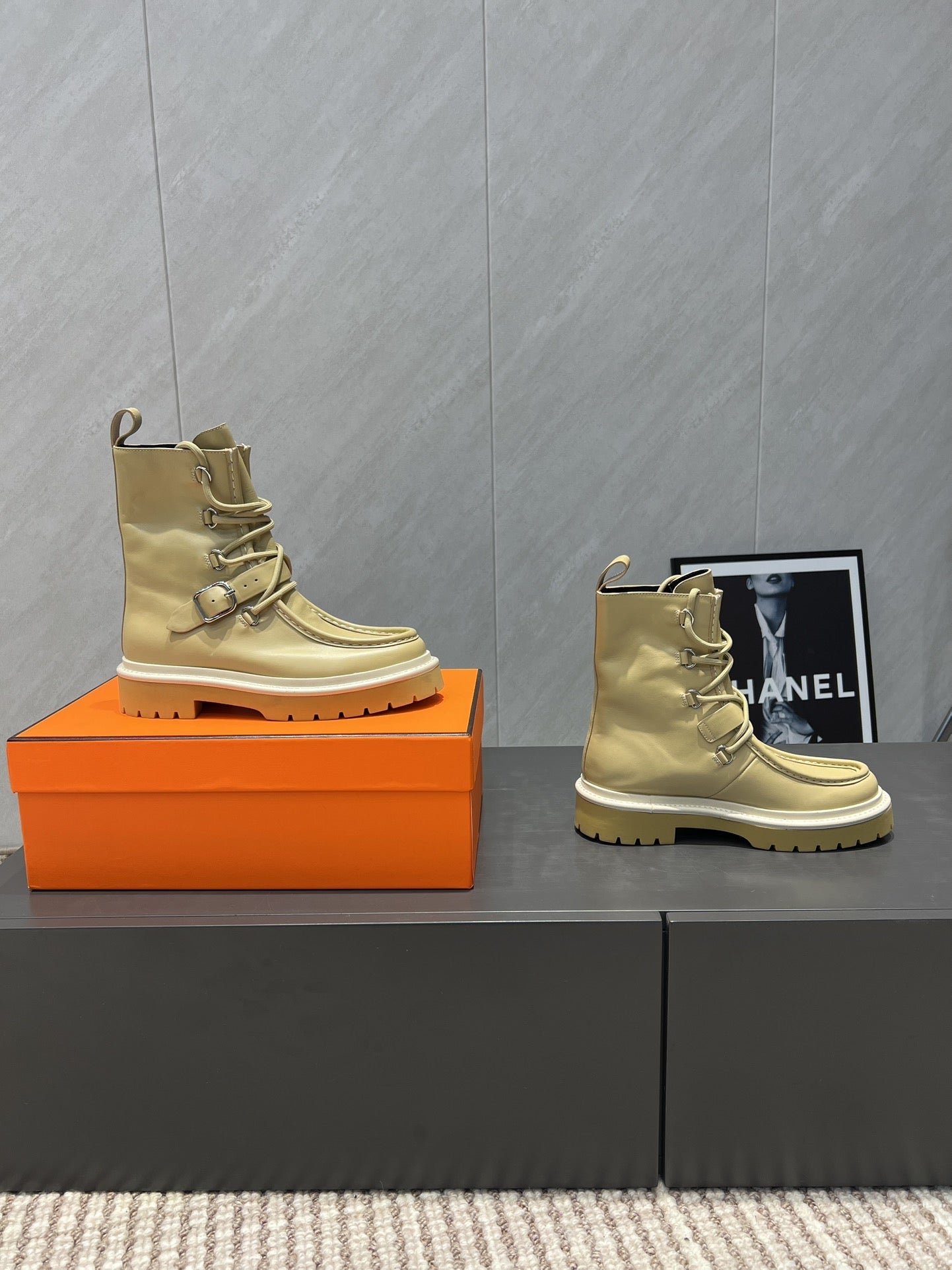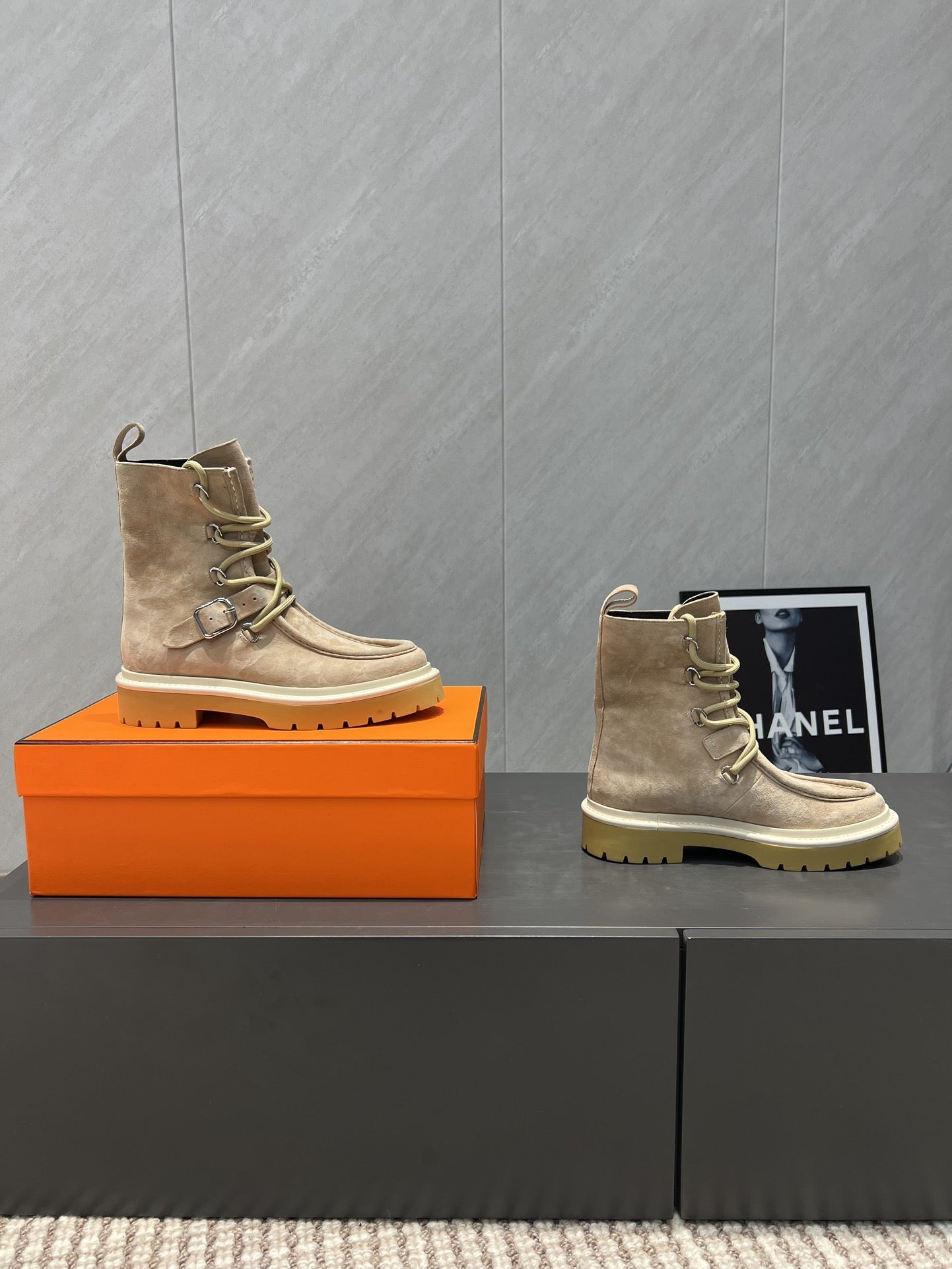 HM 25ss Kelly Buckle Riding Boots Dark Beige Cowhide 576122