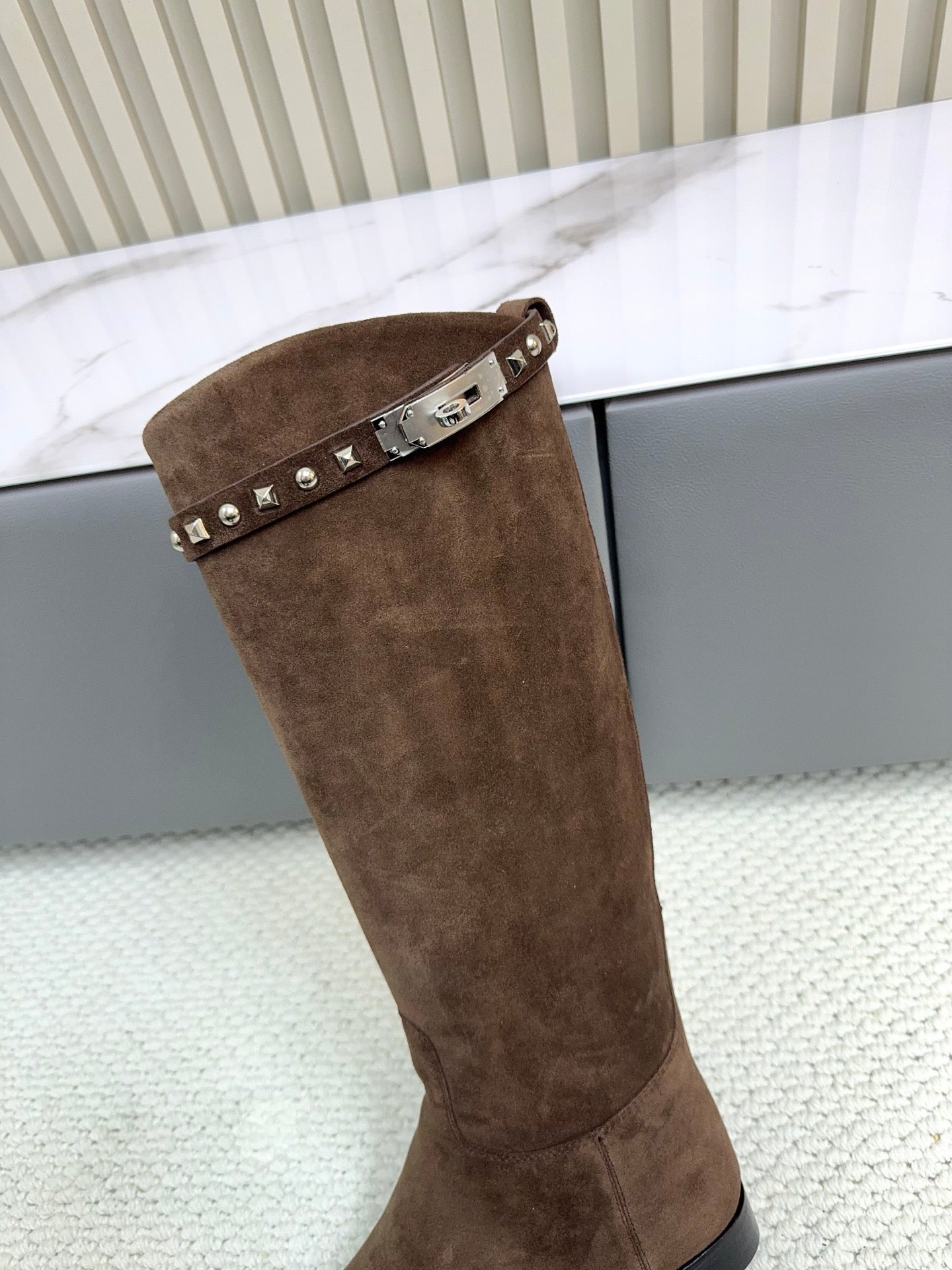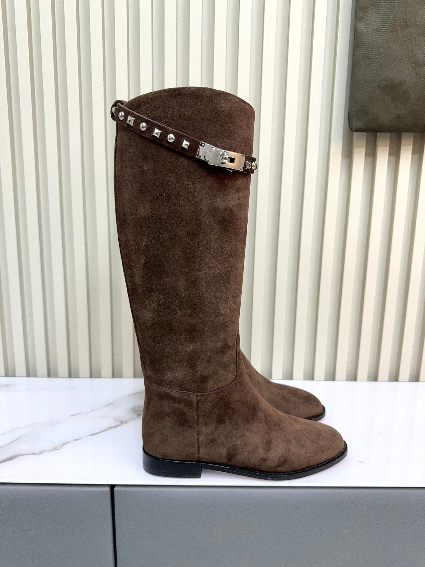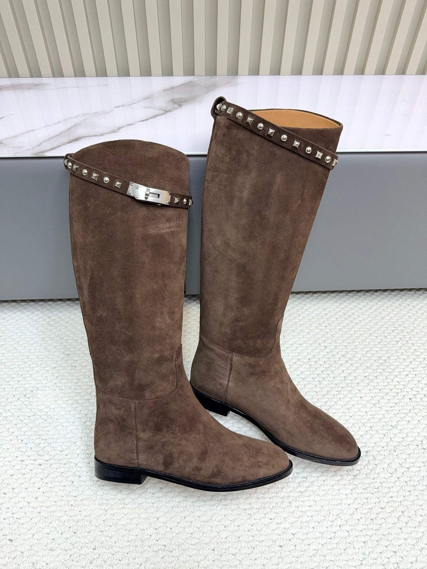 HM 25ss Kelly Buckle Riding Boots Brown Suede 576116