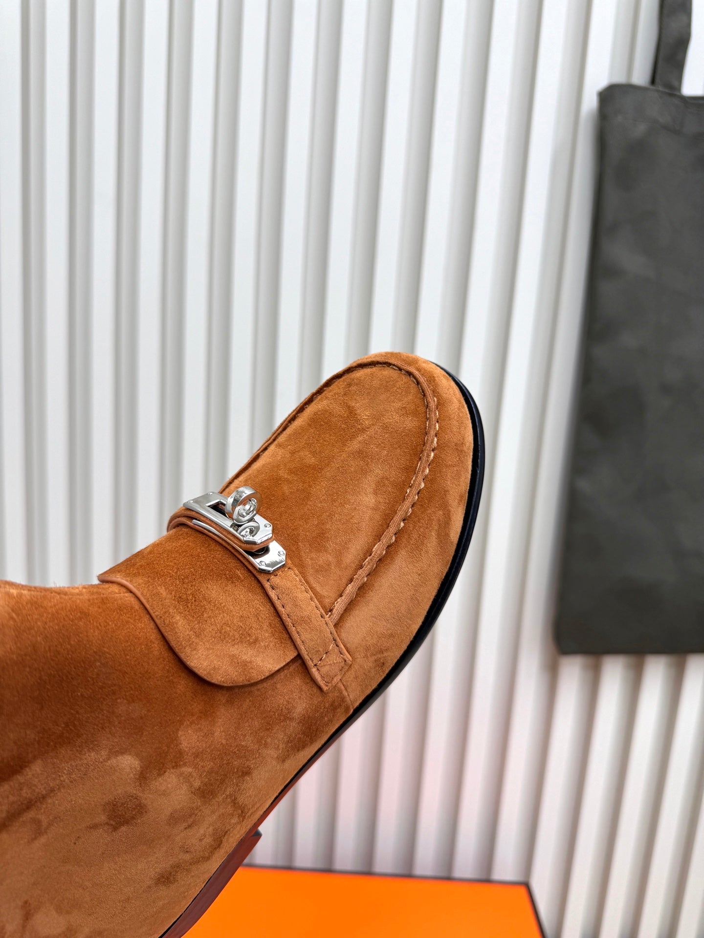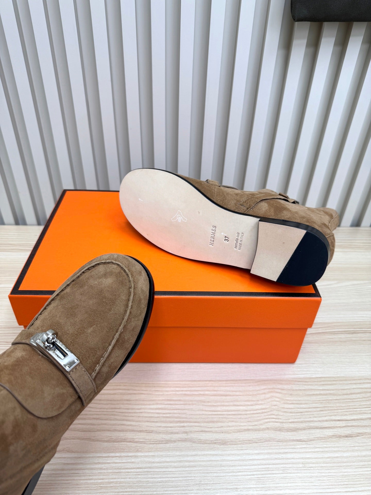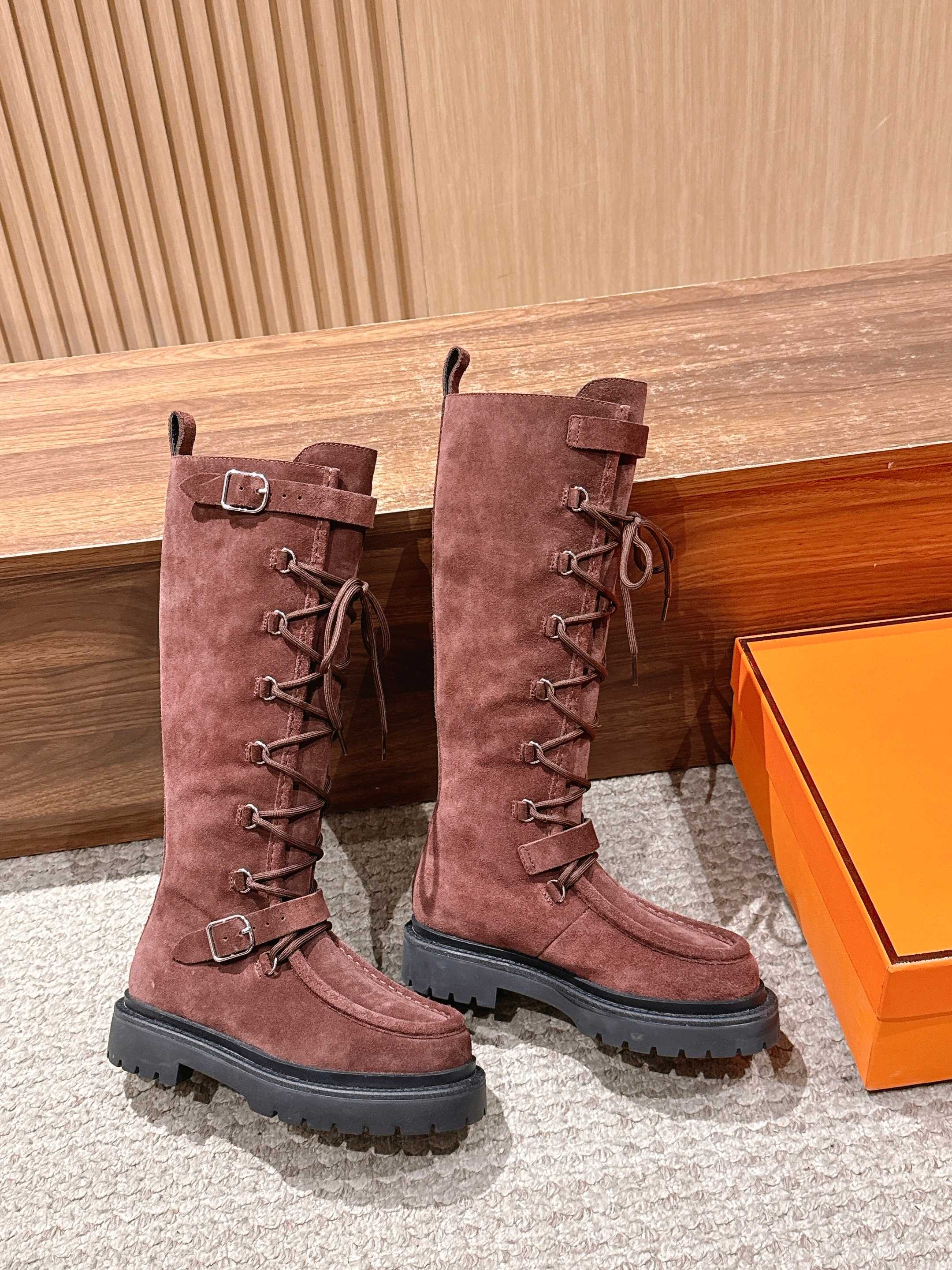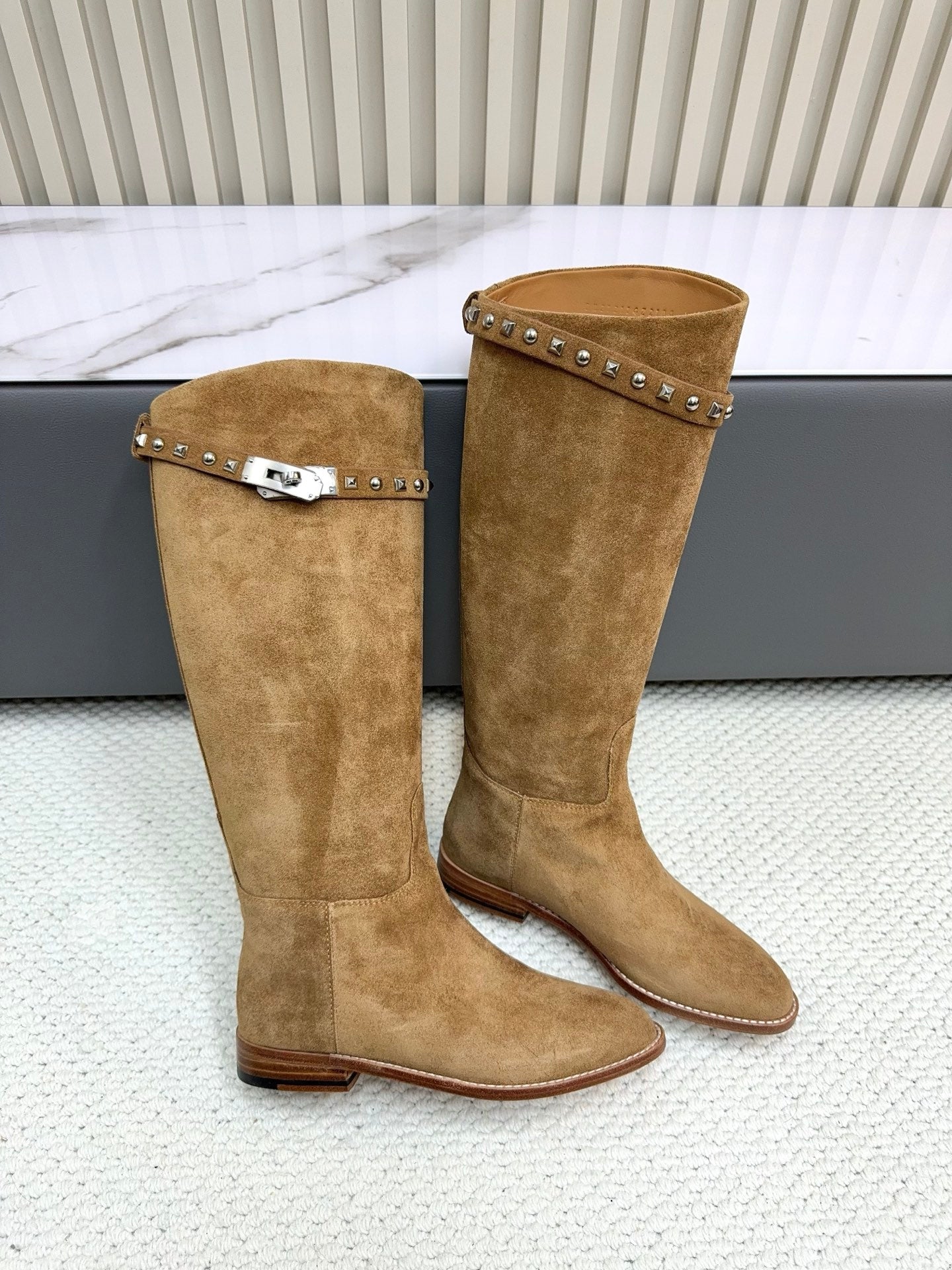 HM 25ss Kelly Buckle Riding Boots Brown Suede 576116