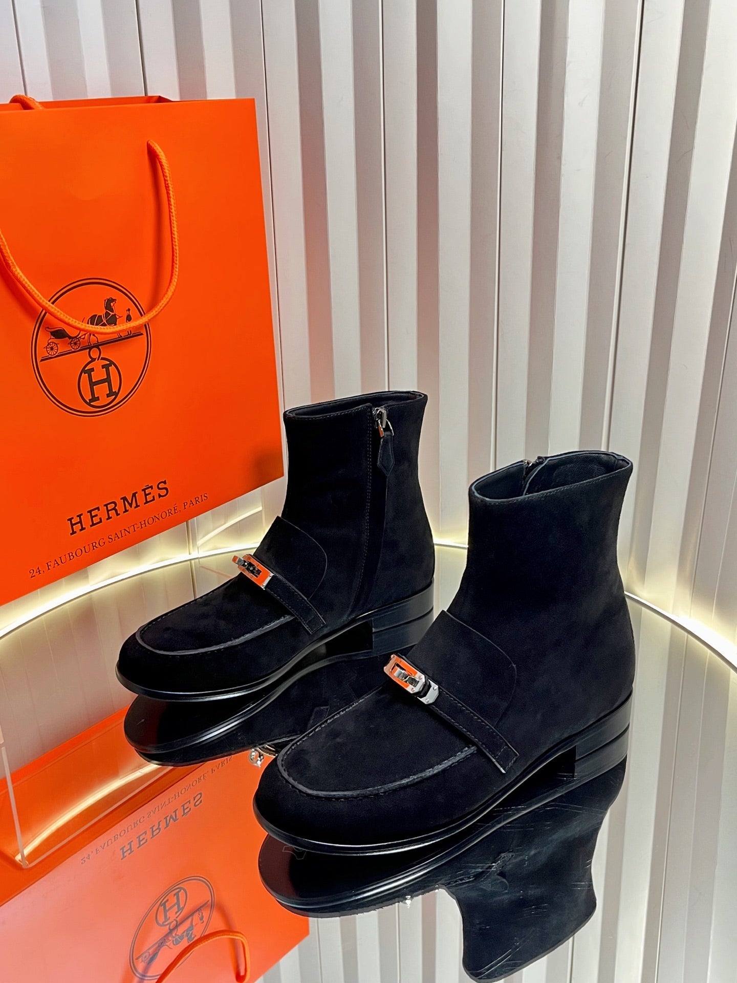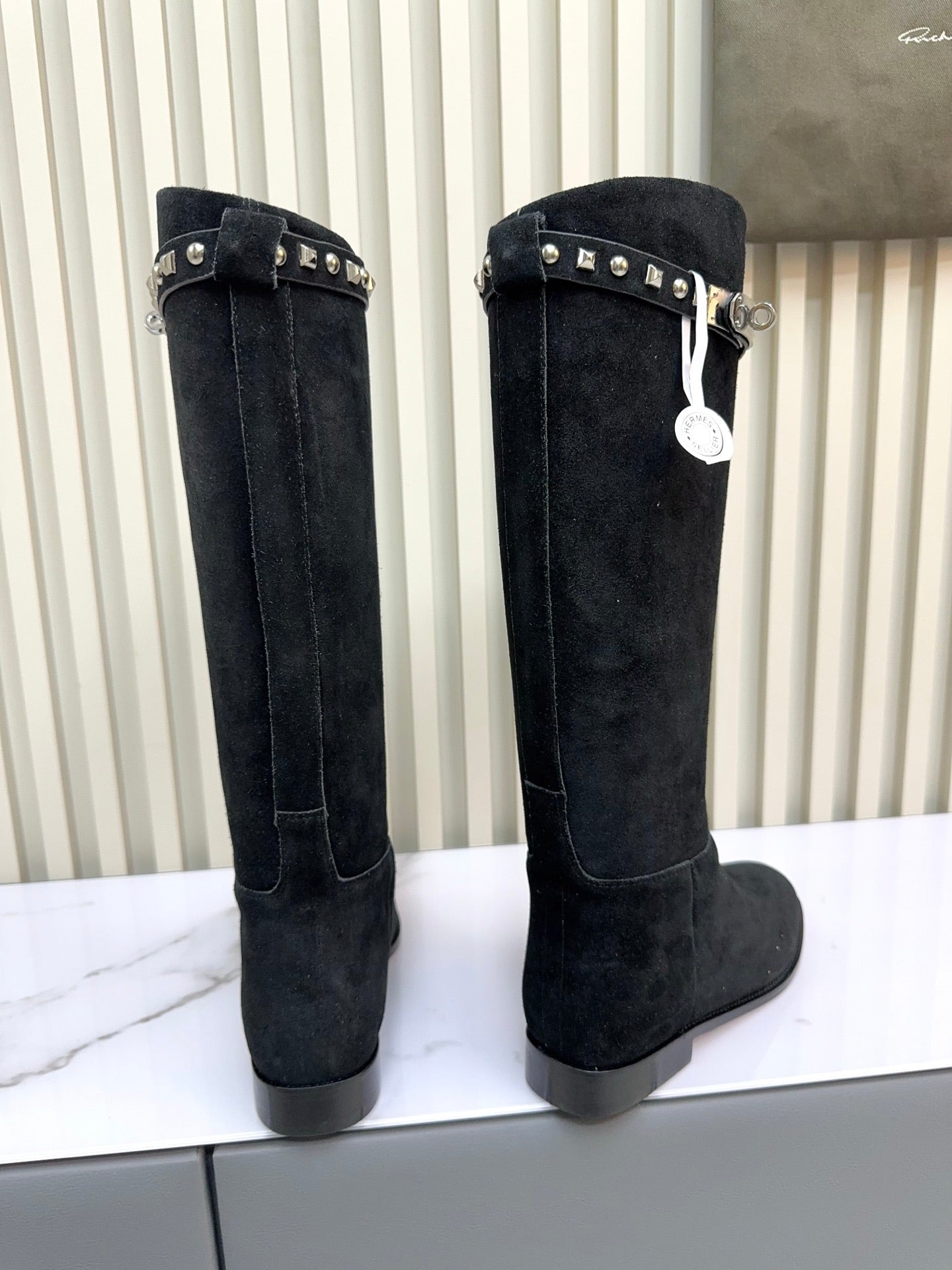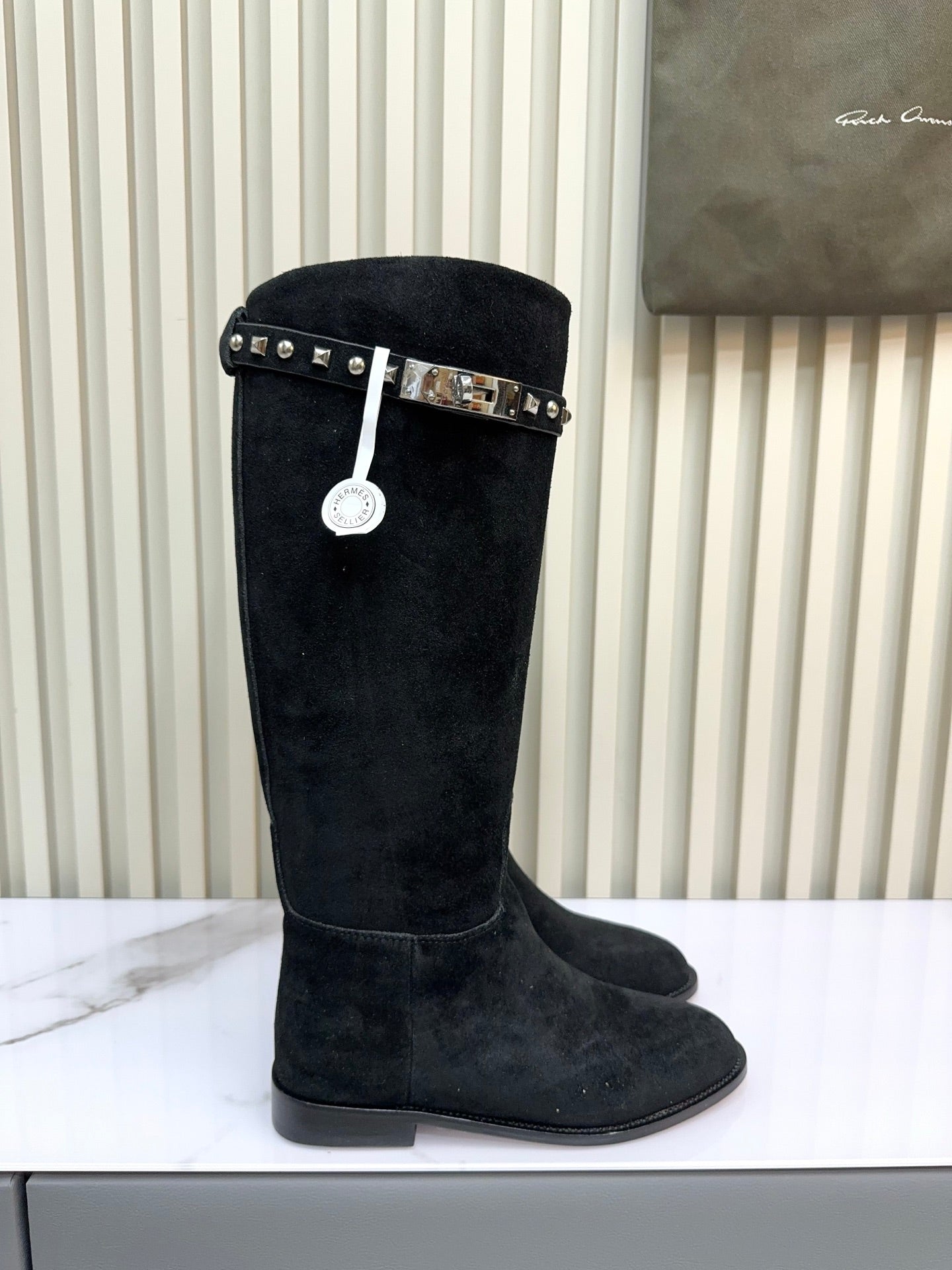 HM 25ss Kelly Buckle Riding Boots Black Suede 576117
